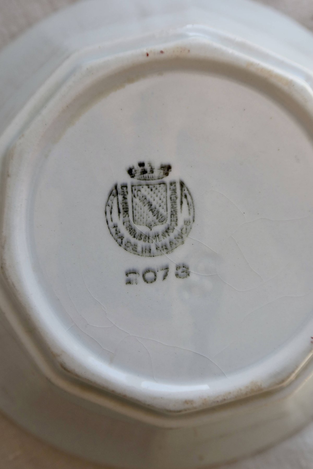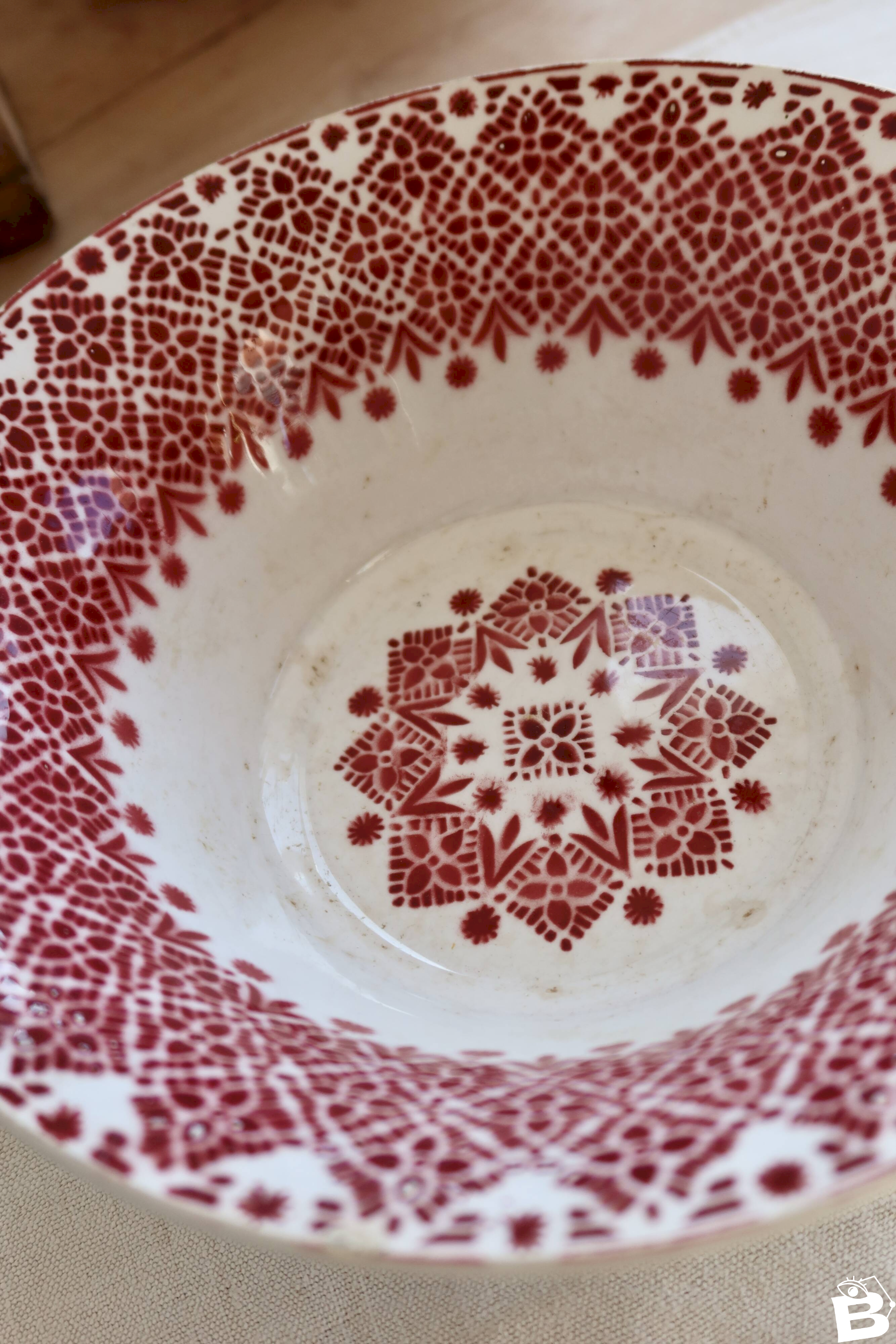 Saladier ancien faïence Saint-Amand modèle 2078 – Décor géométrique bordeau Céramique