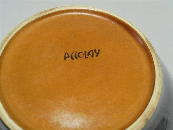 Saladier et saucière des années 60, signés accolay.Quelques fines rayures d'usage.Dimensions du saladier: 26 X 24.5 X 11.5 cm.Dimensions de la saucière: 13.5 X 6.5 cm en moyenne.Poids: 1.220 kg.