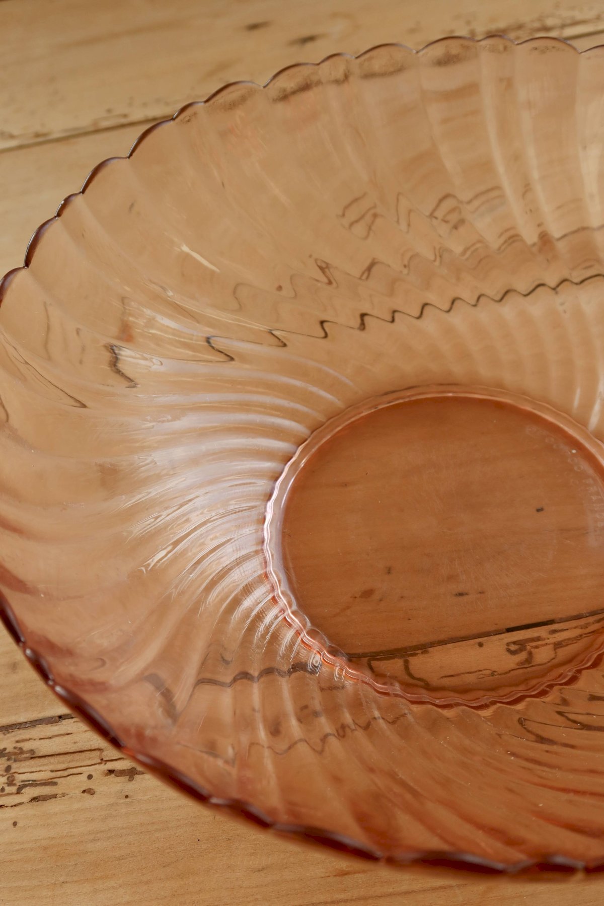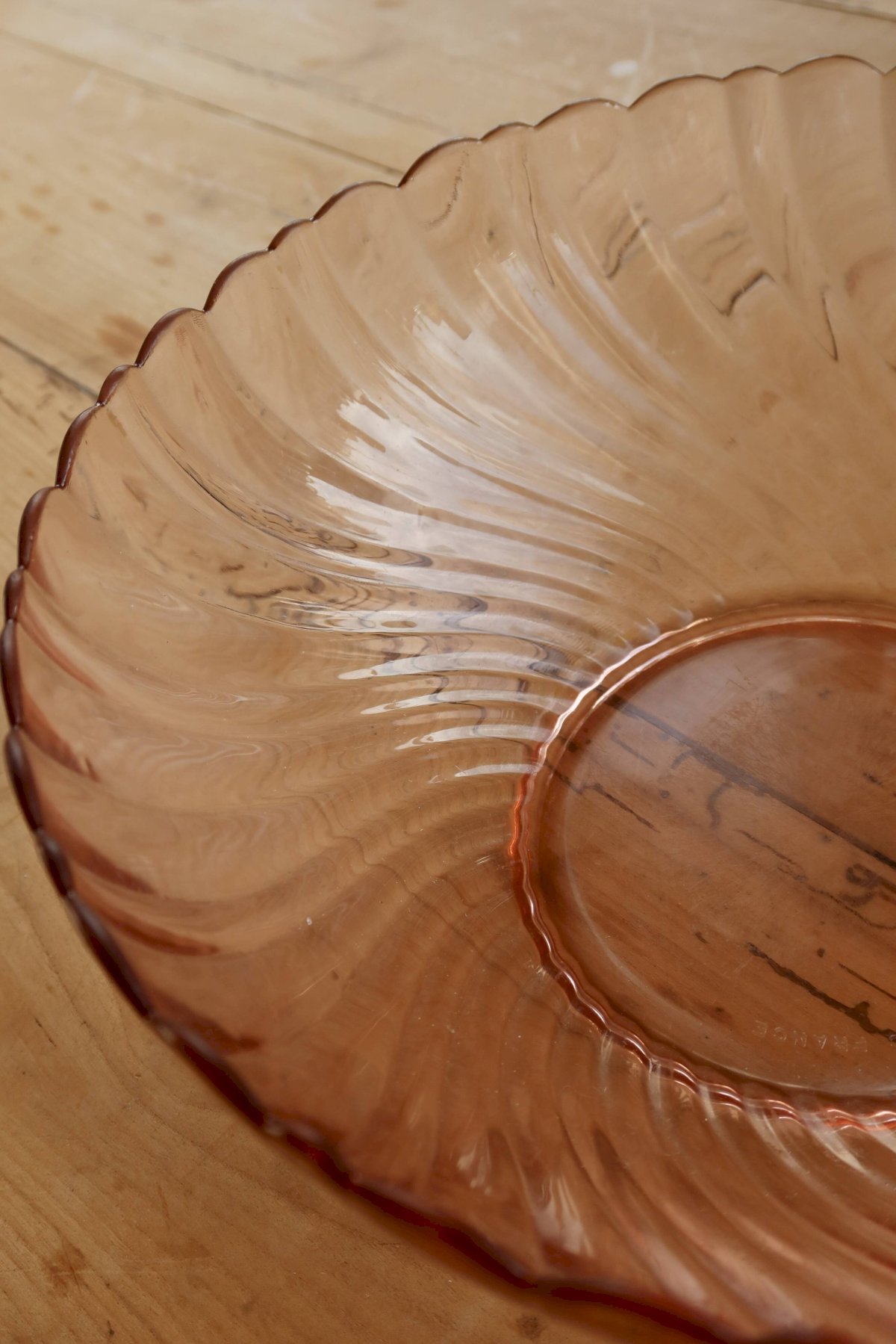 Très charmant saladier Vintage français verre ambré rose poudré. Model Rosaline de la marque Arcopal