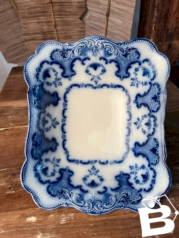 Magnifique saladier WH Grindley modèle Alton «Flow Blue» en porcelaine anglaise.