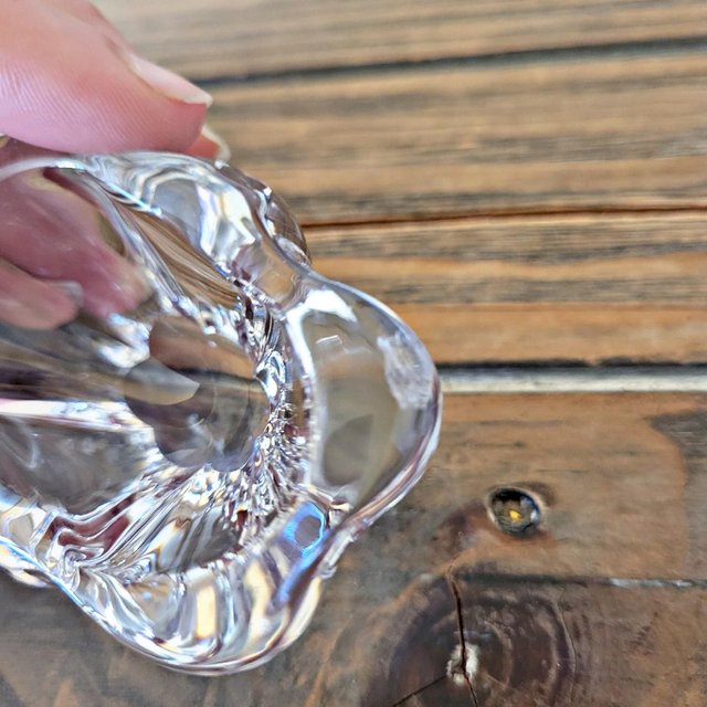`Le cristal, lumineux et délicat, apporte une touche raffinée à la table, même dans les plus petits détails.Ces salerons ont été déjà utilisés et présentent de petits éclats, signe de leur vécu.