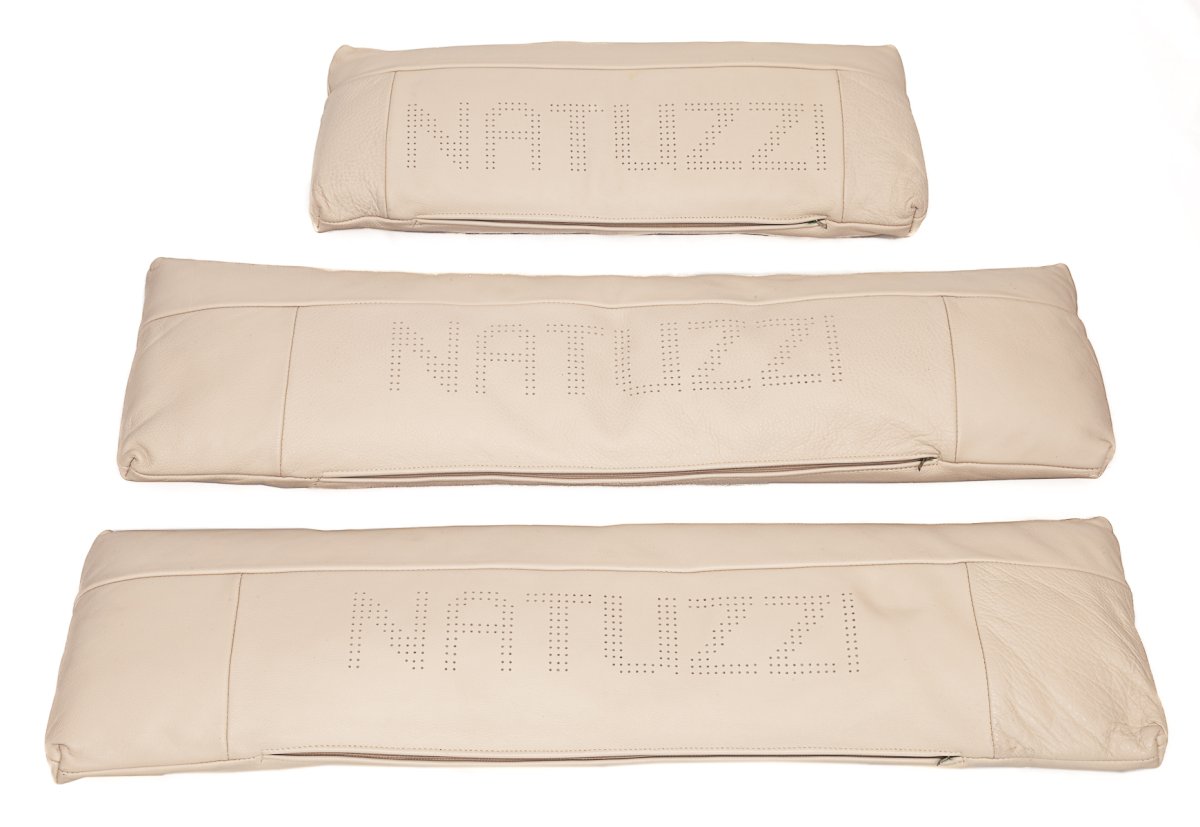 Salon en cuir par Natuzzi Vintage Blanc/Marron Bois/Cuir