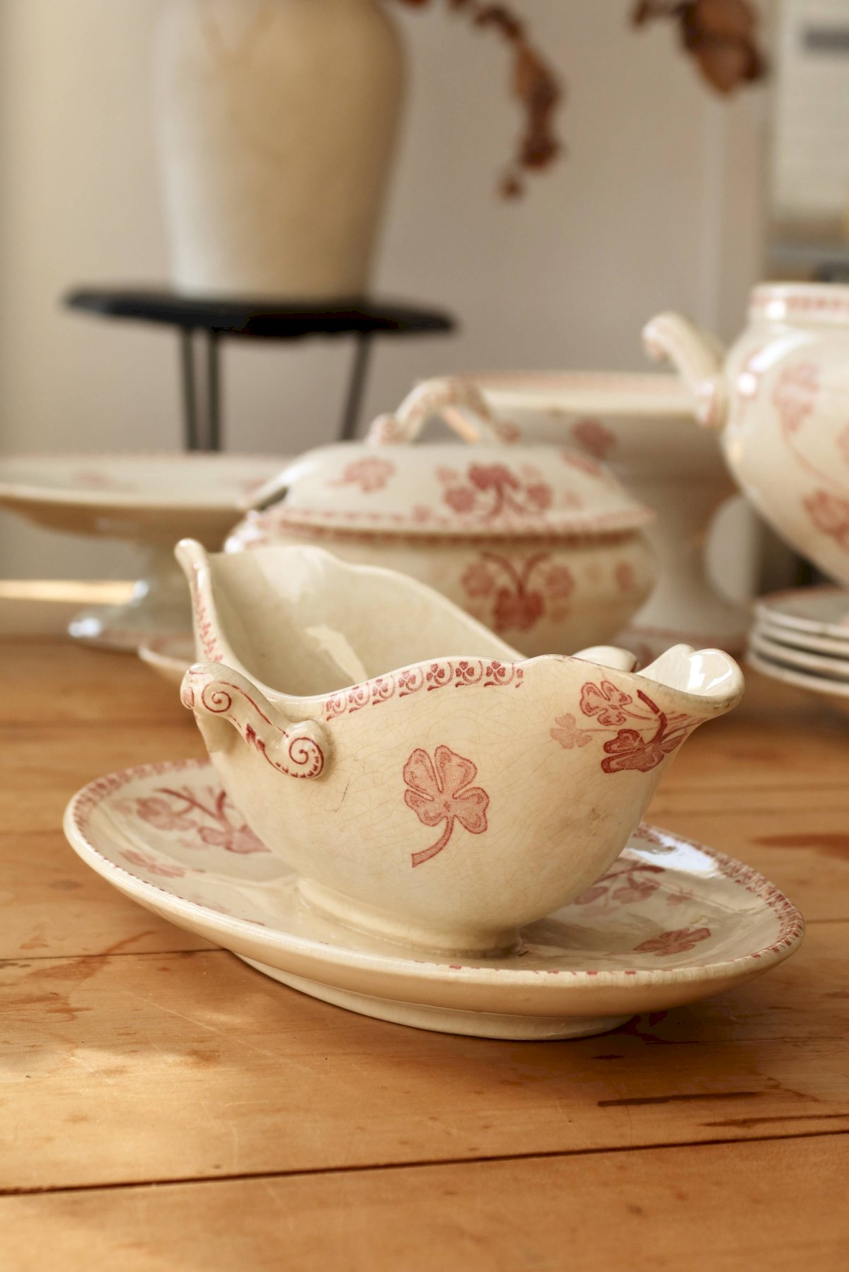 Saucière antique faïence U&C Sarreguemines - Modèle Mimosa