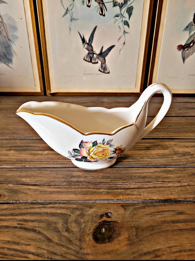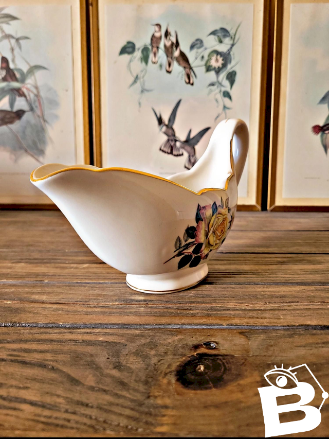 Saucière Gien Gardanne, roses couleur jaune, faïence vintage française Céramique