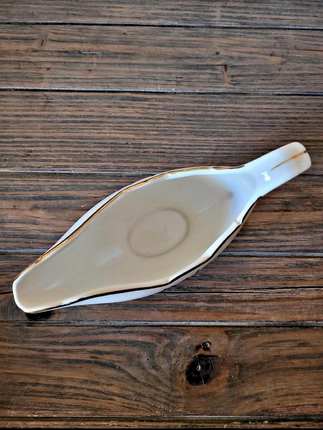 Le liseré et le dessin sont en très bon état.Des assiettes creuses et plates, des raviers et différents plats sont également disponibles.? largeur 20 cm X profondeur 7 cm X hauteur 12 cm environ.Poids de la saucière: environ 320 gr.