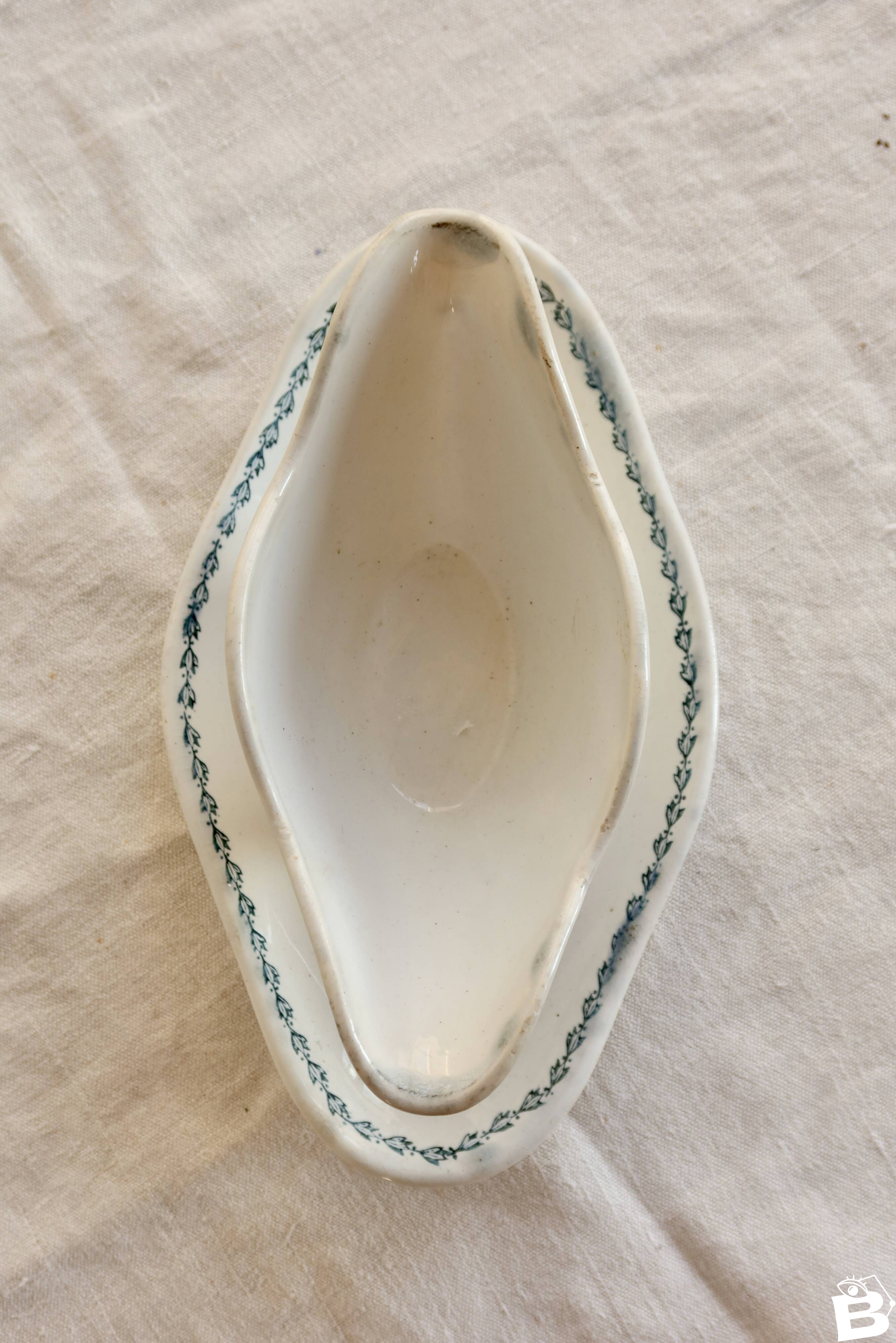 Saucière terre de fer ancienne Saint-Amand modèle 4022 - Liseré fleuri bleu Céramique