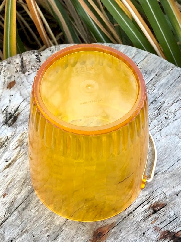Sceau à glaçons vintage jaune en état satisfaisant Non fragilisé mais plastique abîmé par le temps Hauteur 13 cm Diamètre 11,5 cm