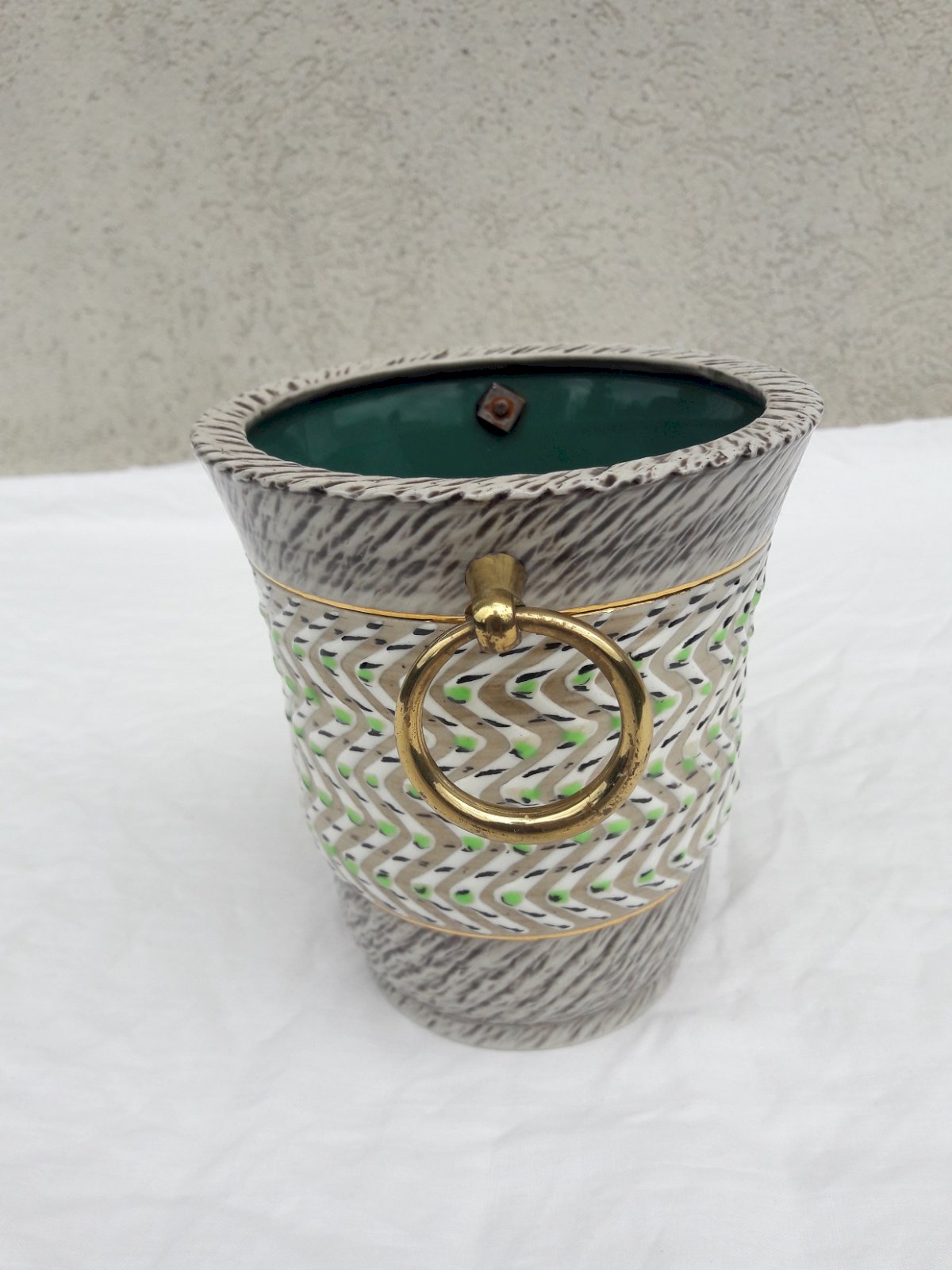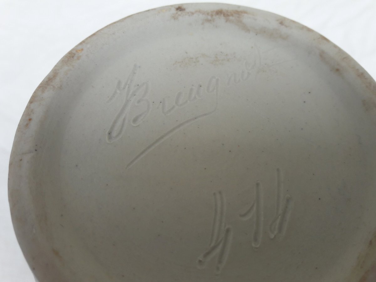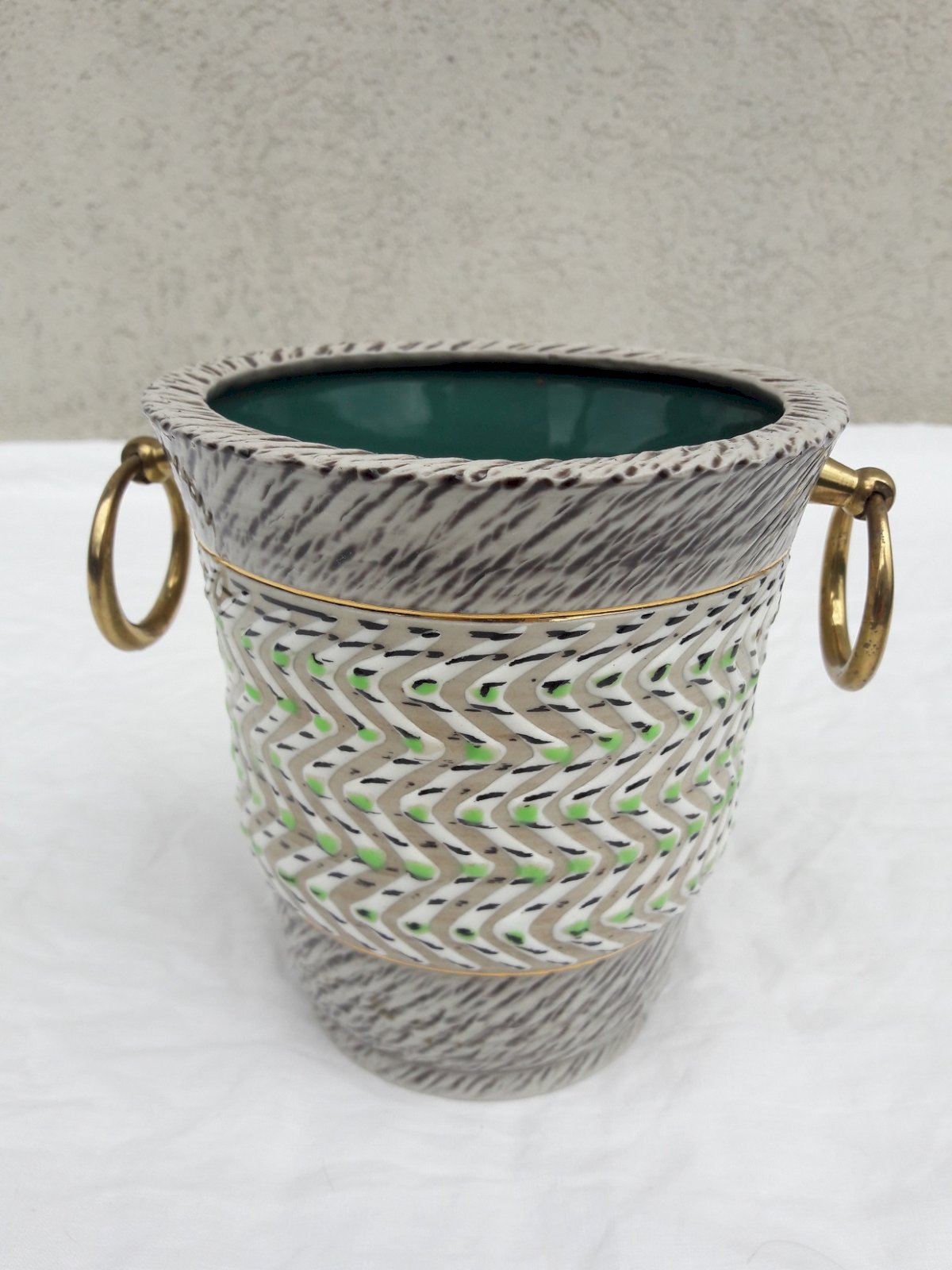 Seau à glace en grès de Puisaye, signé "Jacques Breugnot 414", typique des productions de cet artiste.