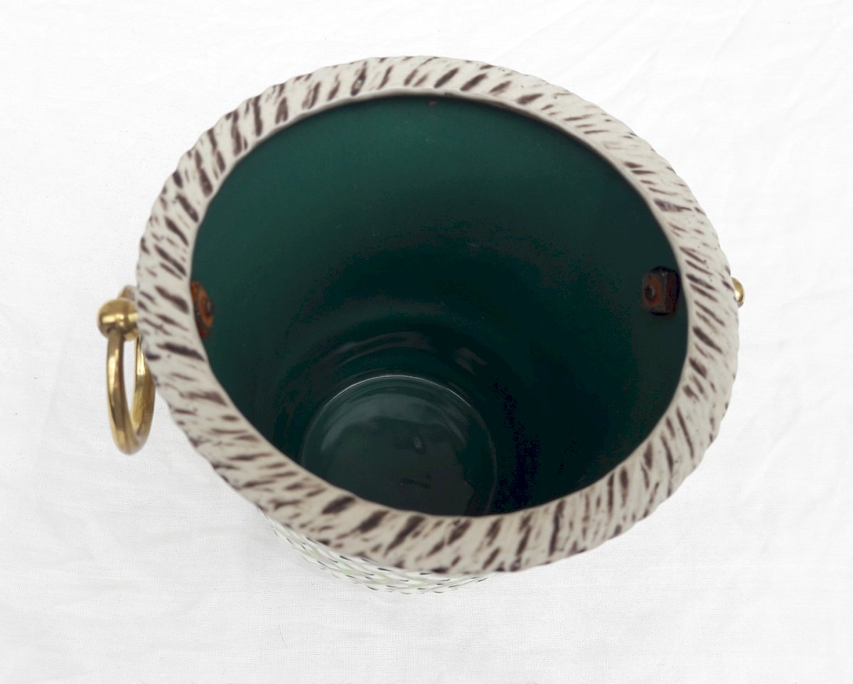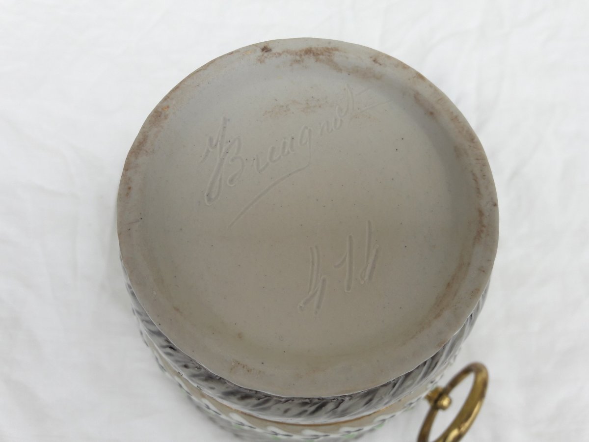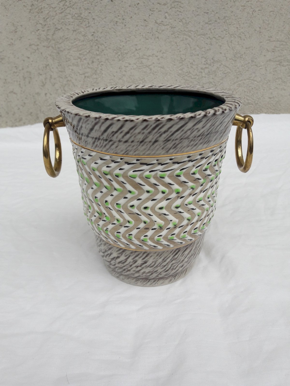 Seau à glace en grès de Puisaye, signé "Jacques Breugnot 414", typique des productions de cet artiste.