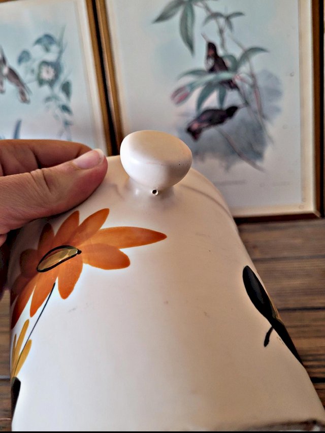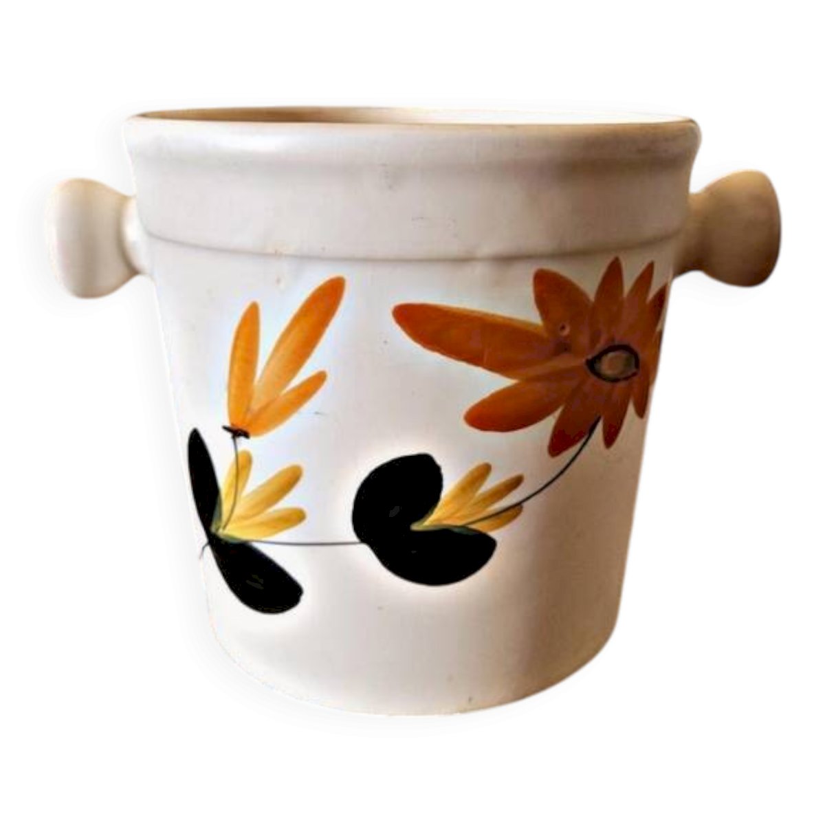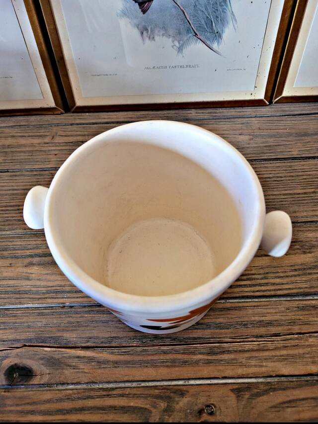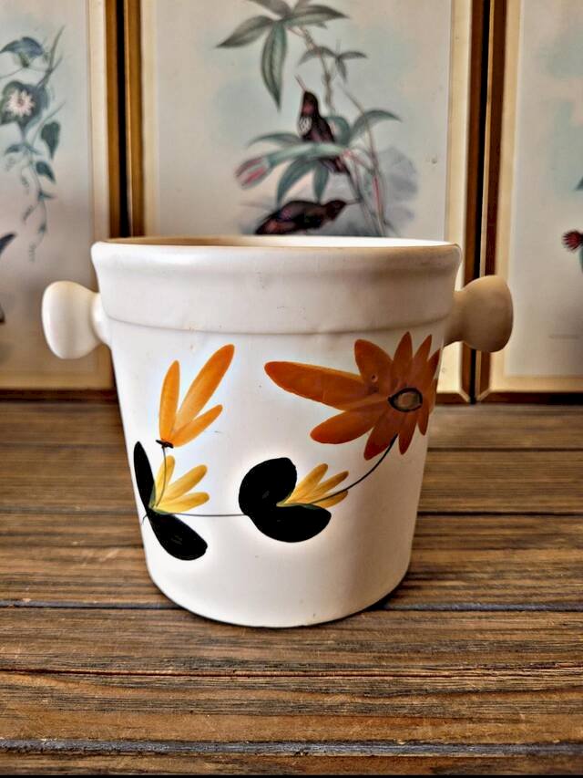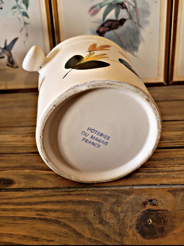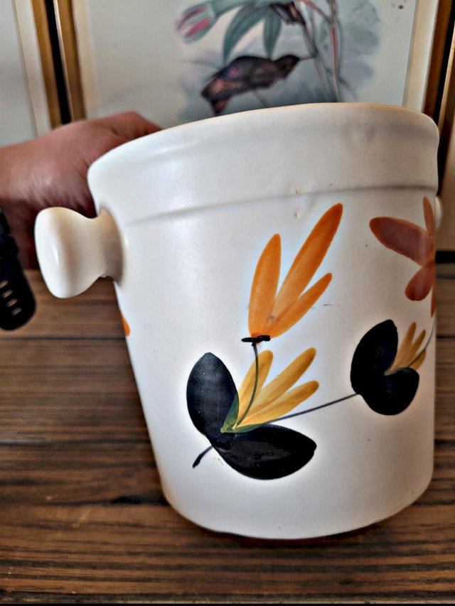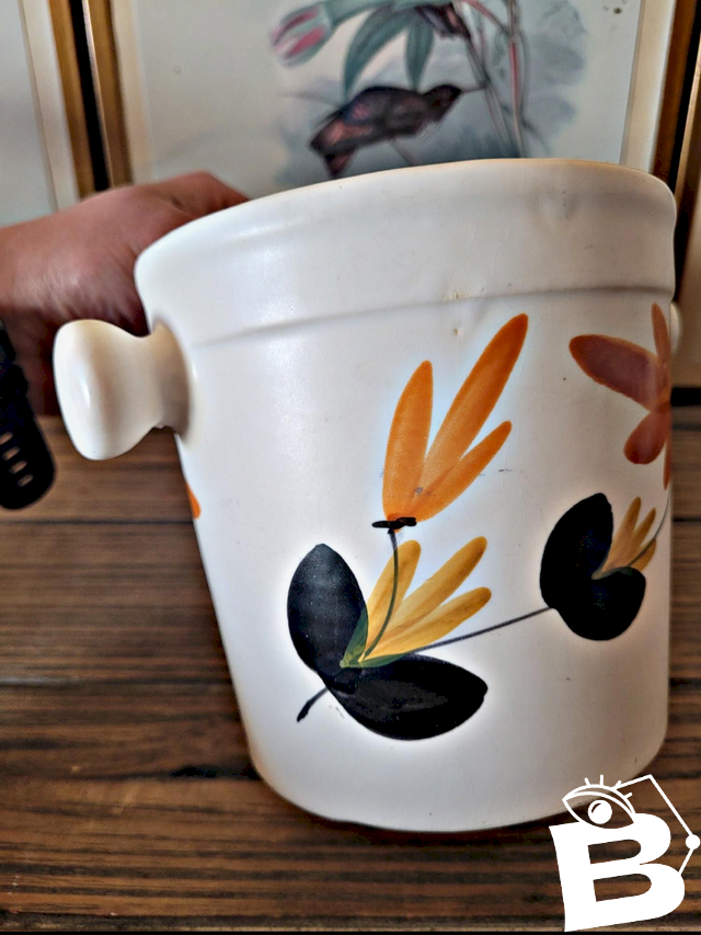 Cet ancien seau à glaçons en céramique des Poteries du Marais séduit par son décor typique et son charme artisanal.