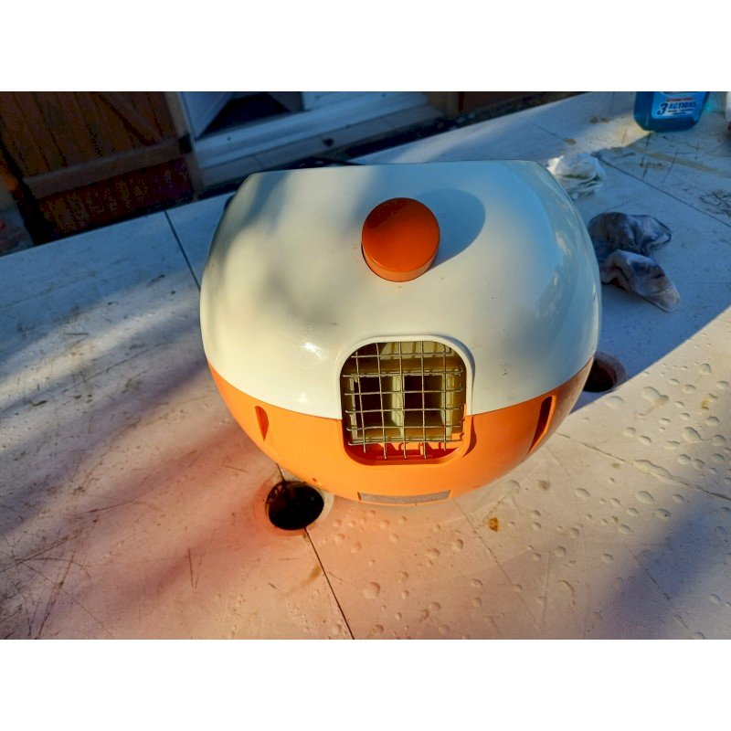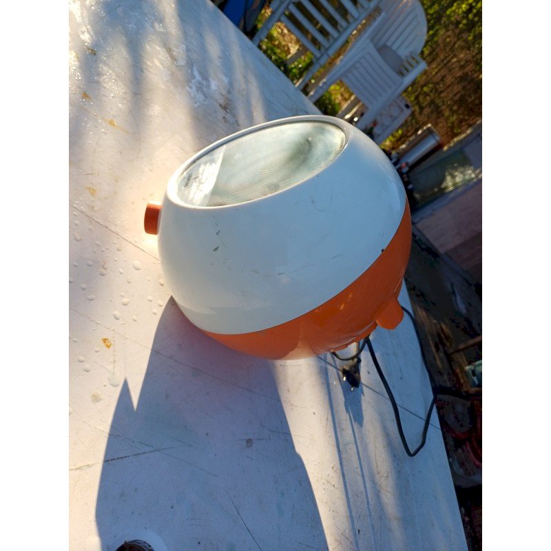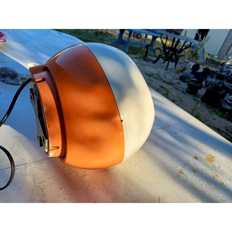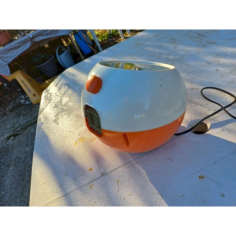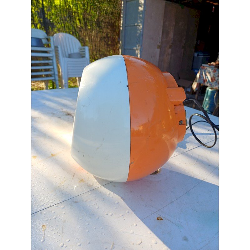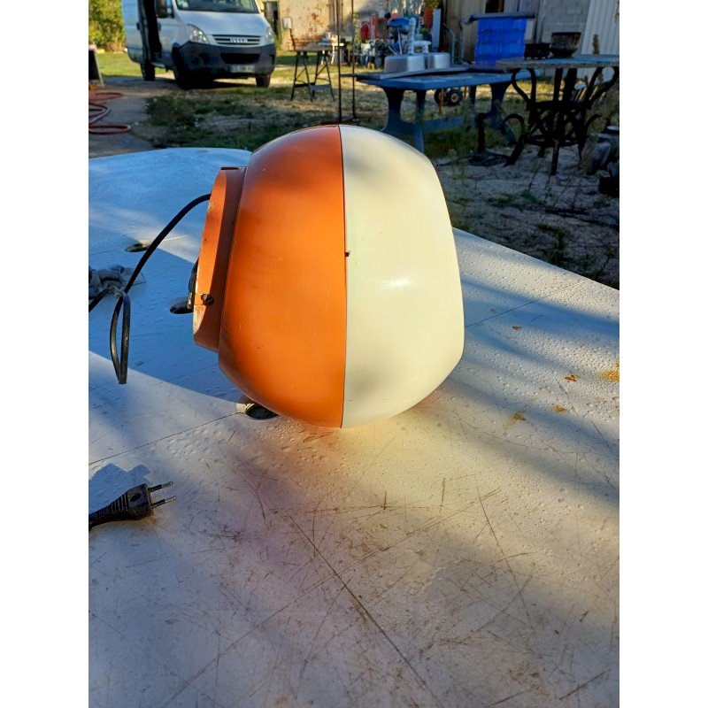 Seche Mains Siemens TH 5000 par Roger Tallon Design emblématique :Conçu par Roger Tallon pour Siemens, son style "Space Age"  années 1970.Double fonction :Il sert à la fois de sèche-mains soufflant et de miroir.Matériaux :Il est fabriqué en plastique orange et blanc, couleurs caractéristiques de l'époque. Diam : 25 cm , Poids : 2,8 Kg , trés bon ètat , Fonctionnel