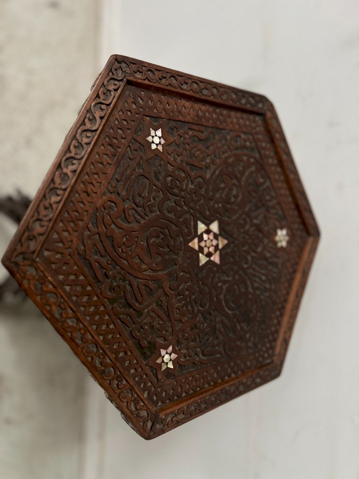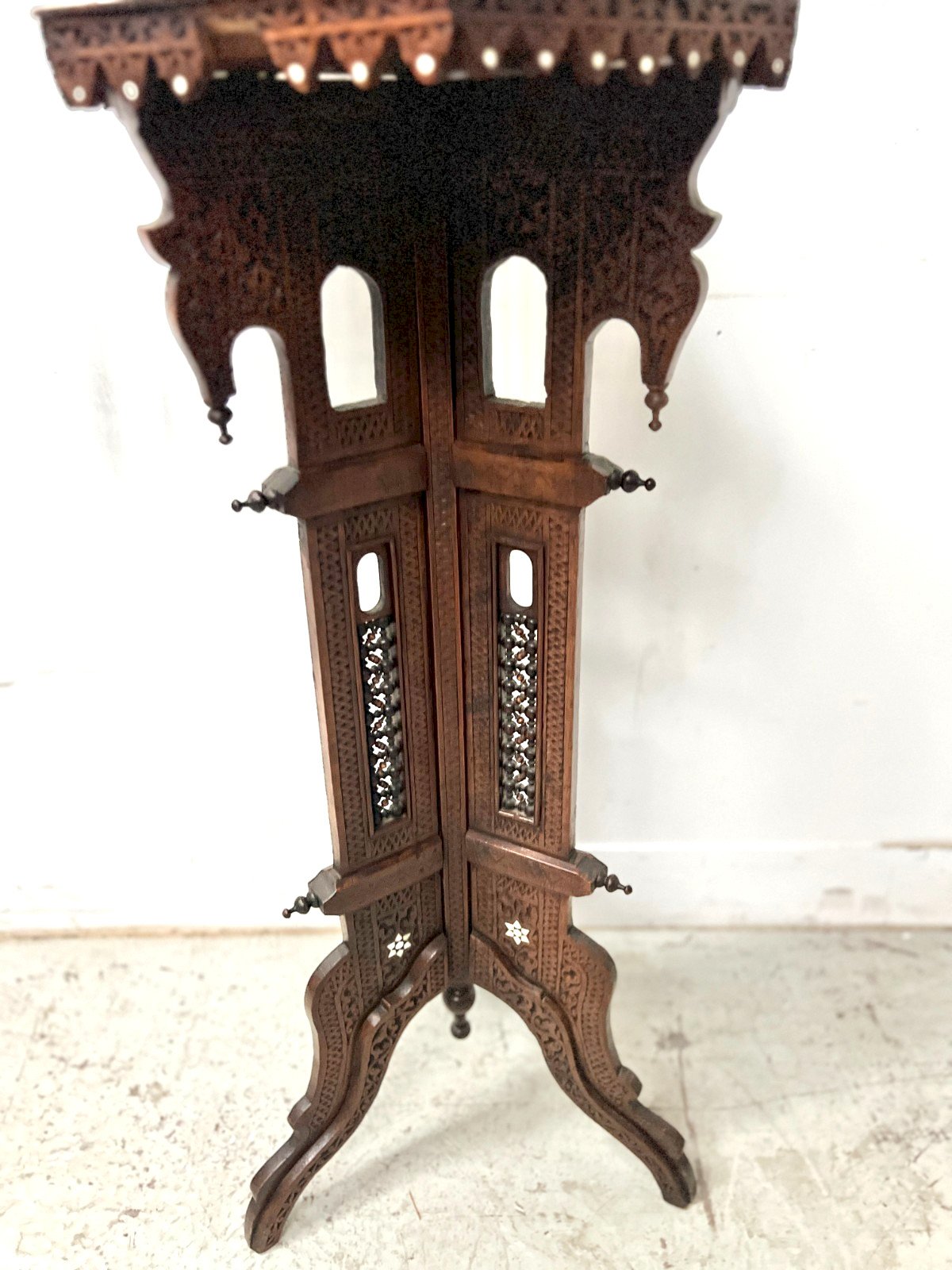 Sellette de style Syrien en bois sculpté a incrustation XX siècle
