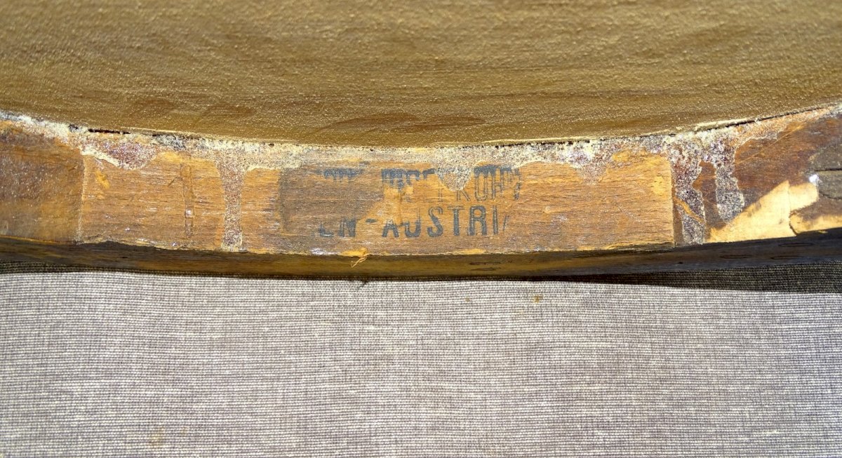 Sellette, table d’appoint N° 948 par KOHN vers 1910. Hauteur : 76 cm, diamètre : 46 cm Table solide, à plusieurs usages possibles. Estampille sous le plateau. Plus de photos en renseignements sur demande. Expédition France et Europe ou retrait Alsace. Couleur:Chene Type:Table Marque:KOHN Sous-type:Desserte Pays d'origine:Autriche Matière:hetre Style:1910 Forme:Ronde