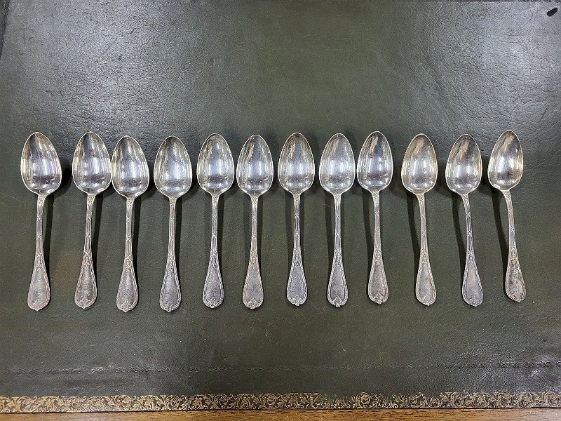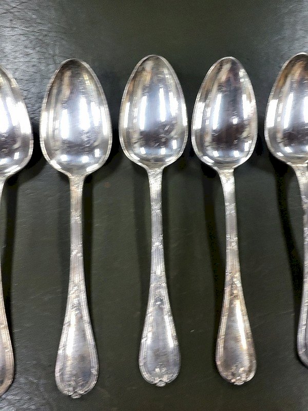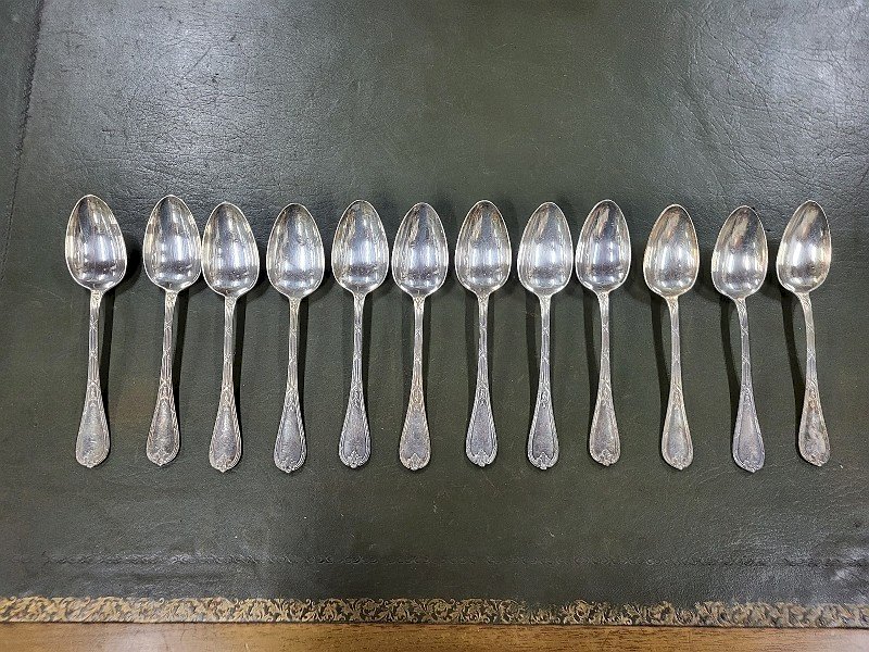 SERIE DE 12 GROSSES CUILLERES CHRISTOFLE RUBANS CLOCHETTES EN METAL ARGENTE