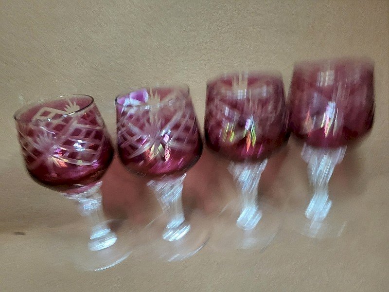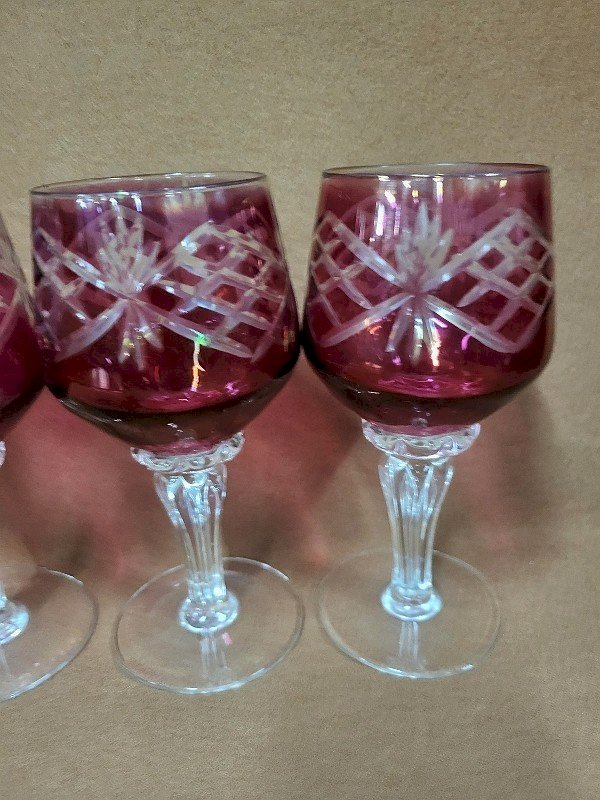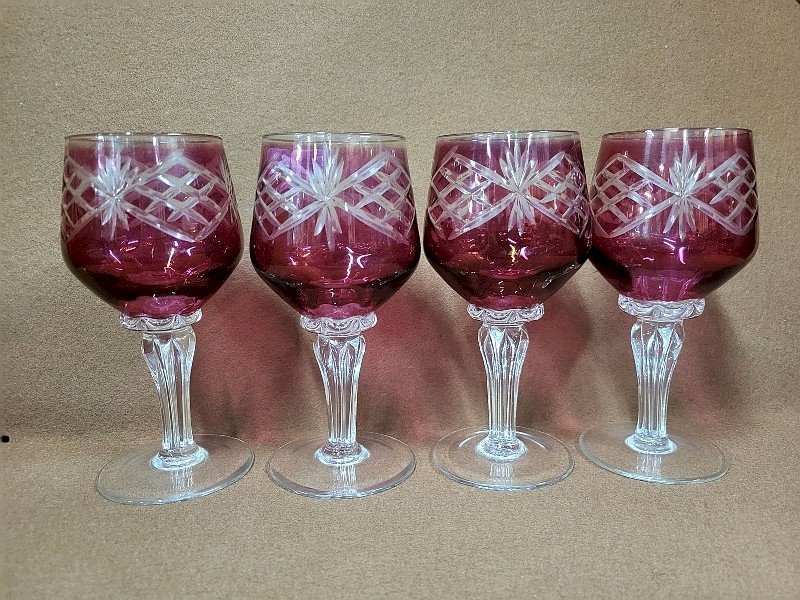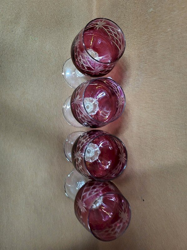 SERIE DE 4 VERRES A EAU ROUGE EN VERRE CISELE