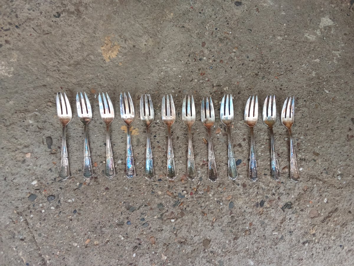 Série de douze fourchettes à dessert ancienne