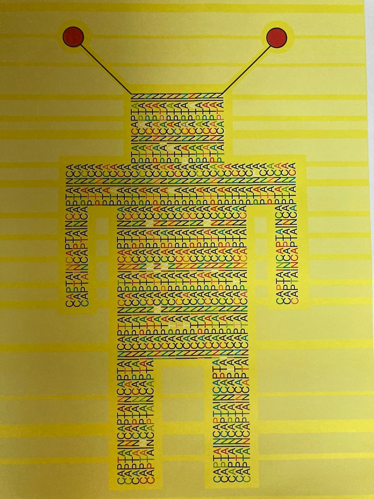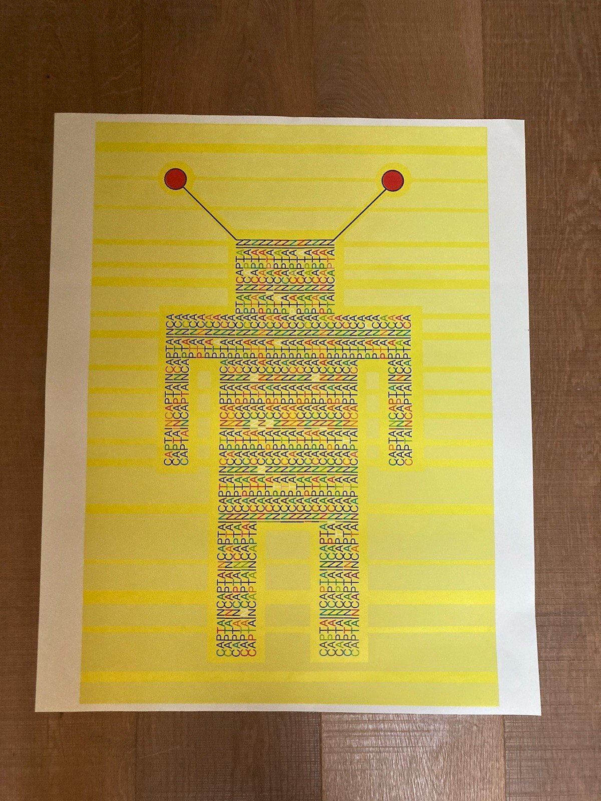 Sérigraphie 1990 Art Robot Capitaine Captain Jaune Lettrage A Identifier