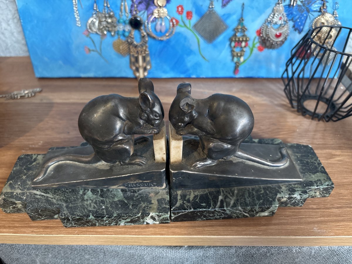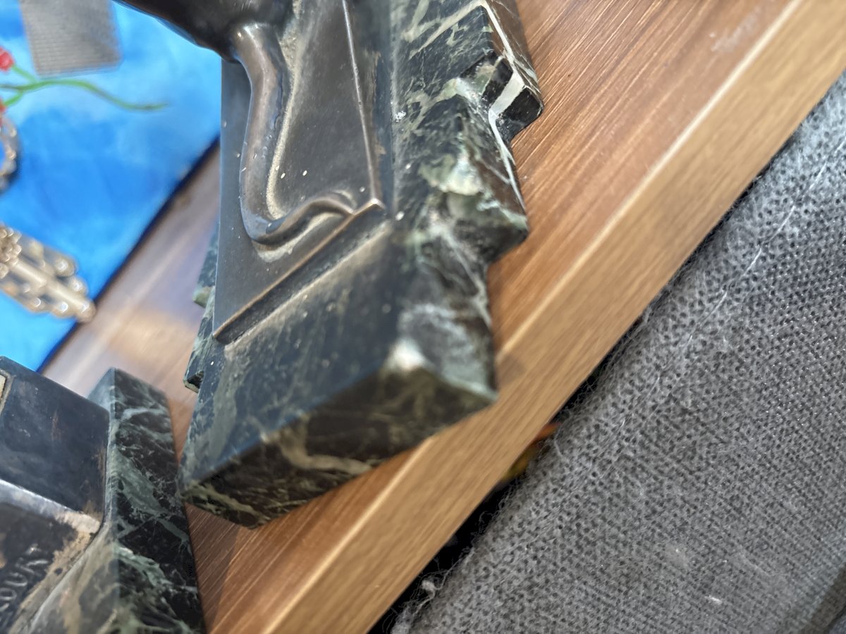 paire de serre-livres en bronze et marbre