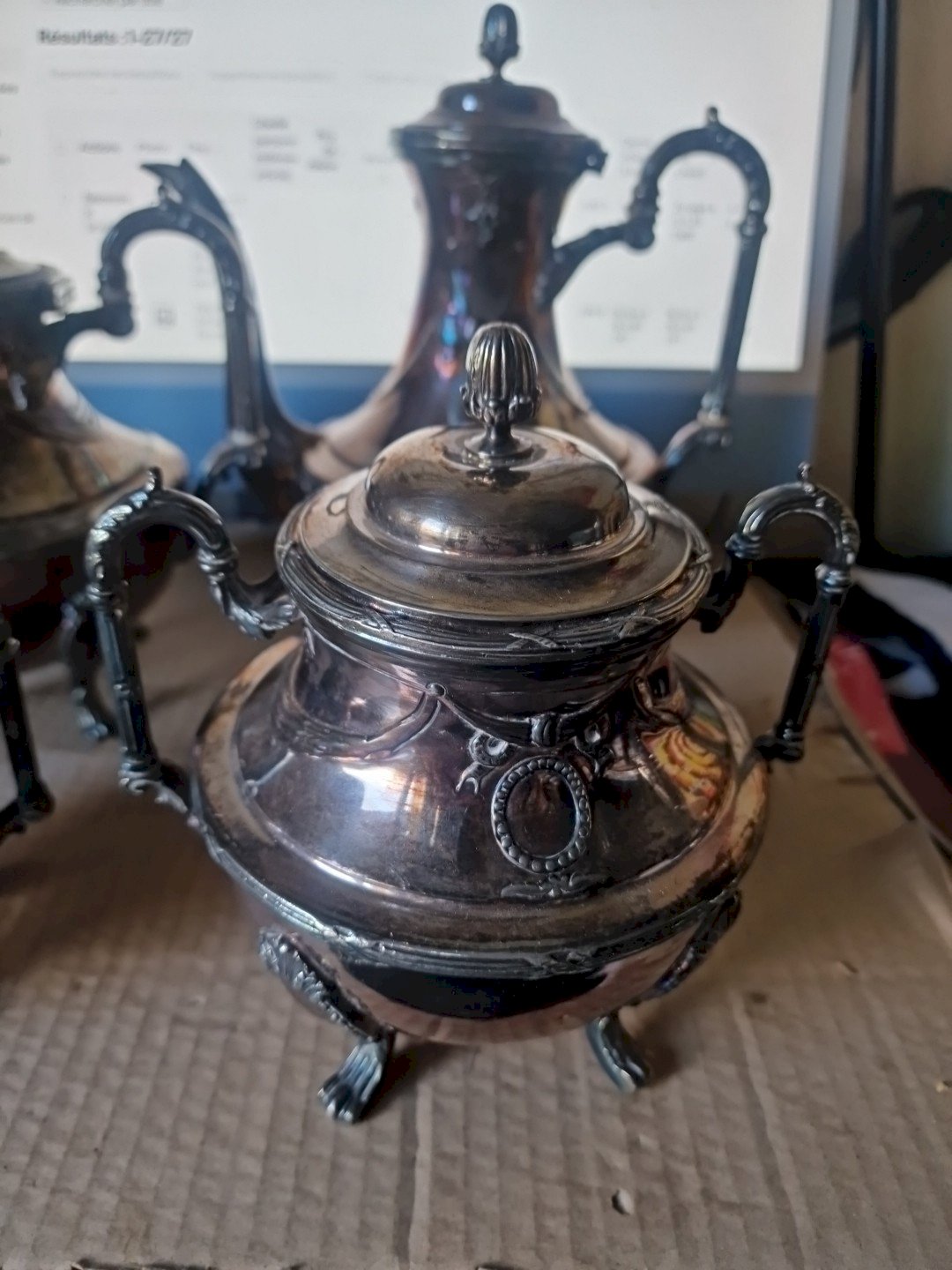 SERVICE À CAFE ET À THÉ COMPLET EN MÉTAL ARGENTÉ