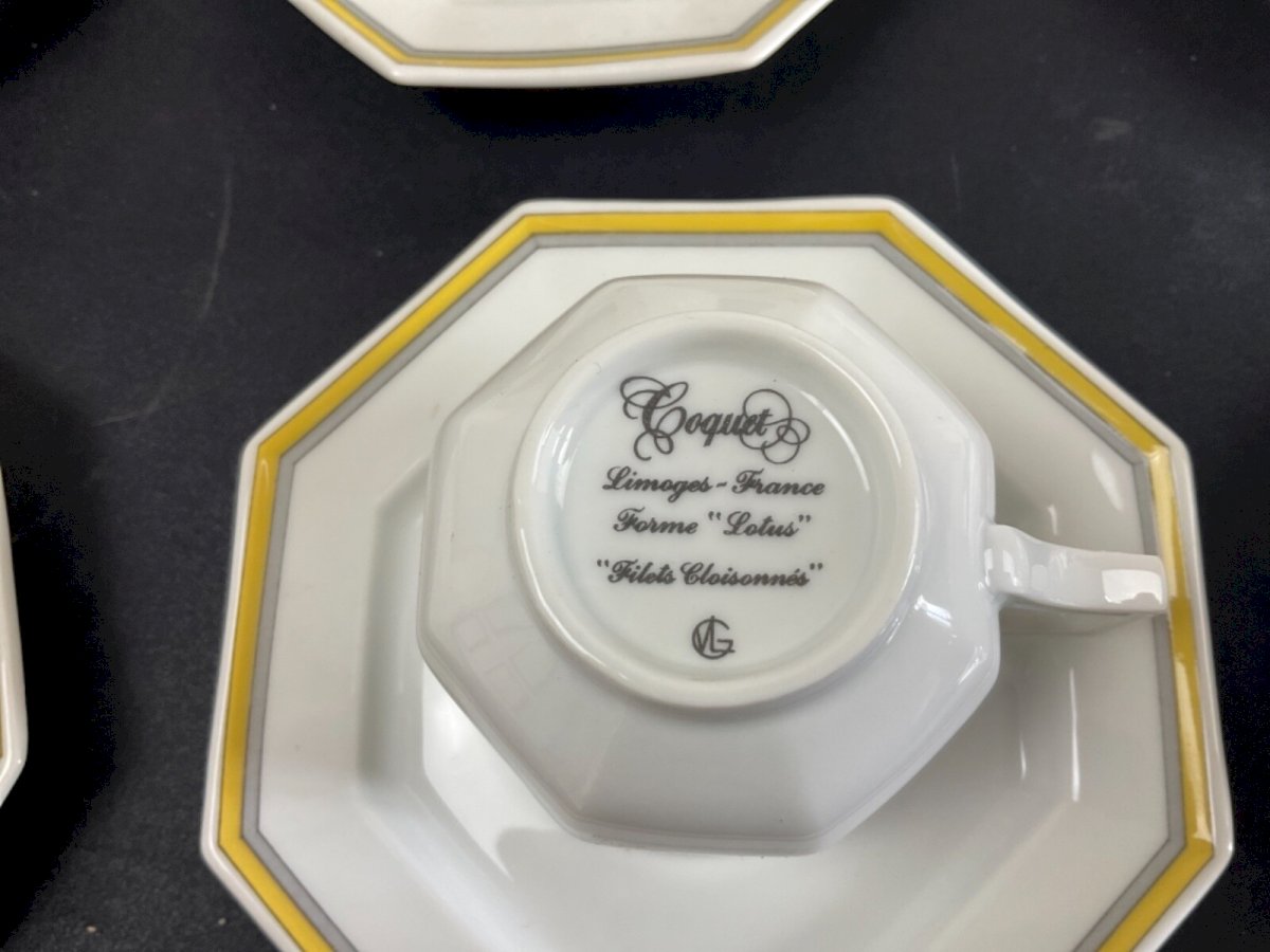 Partie de service à café porcelaine de limoges COQUET modèle lotus filets cloisonnés Marque:coquet Origine:Limoges