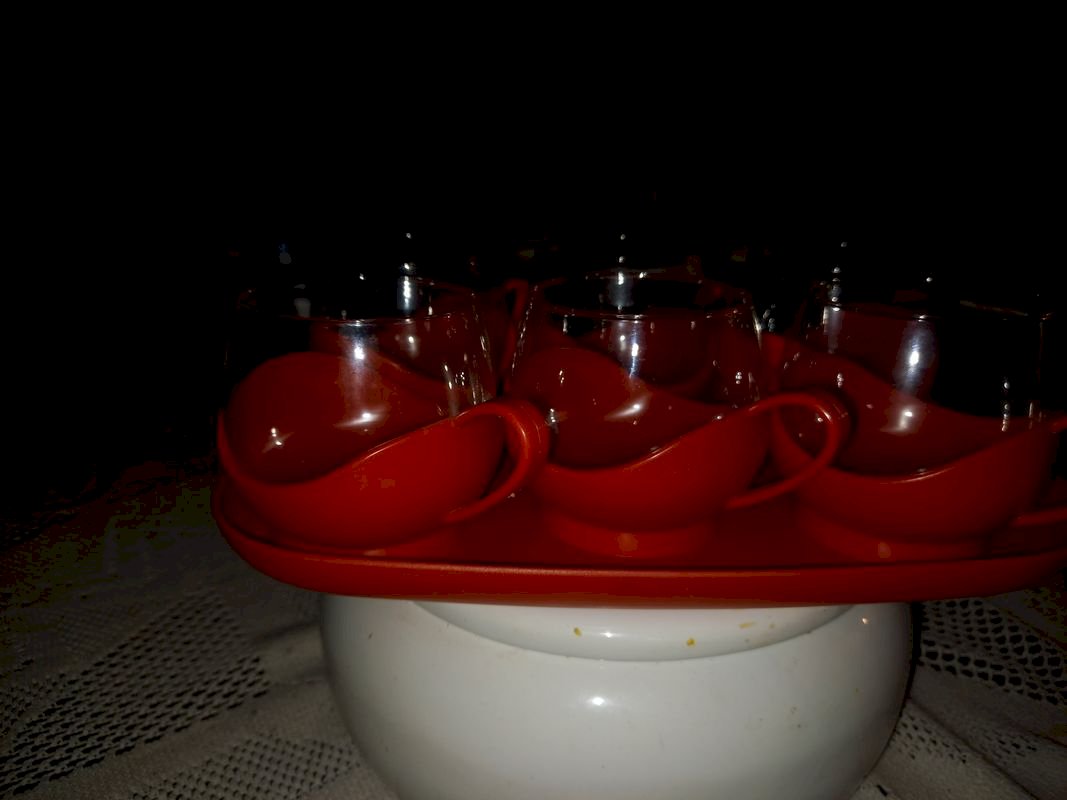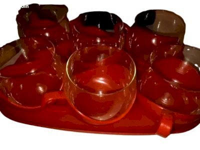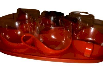 Service à café rouge et son plateau vintage des années 70