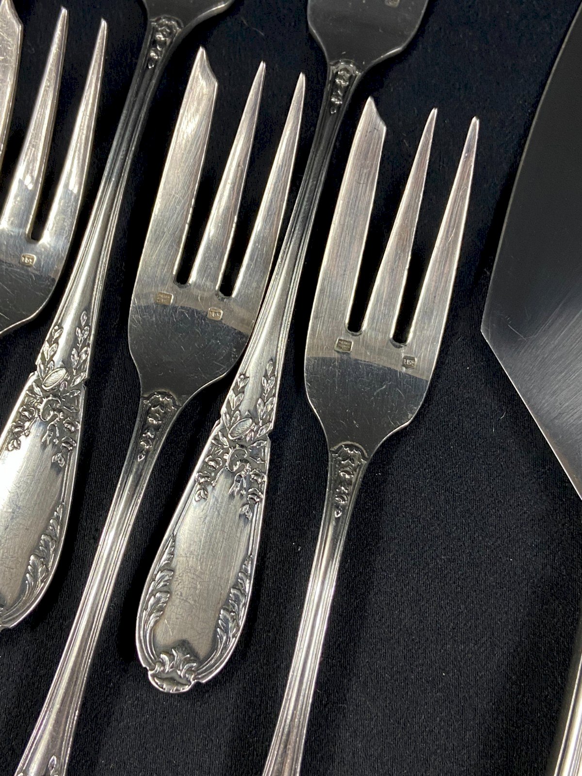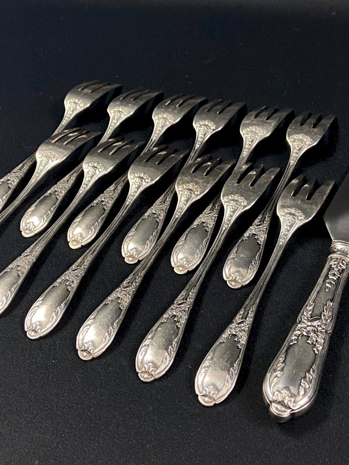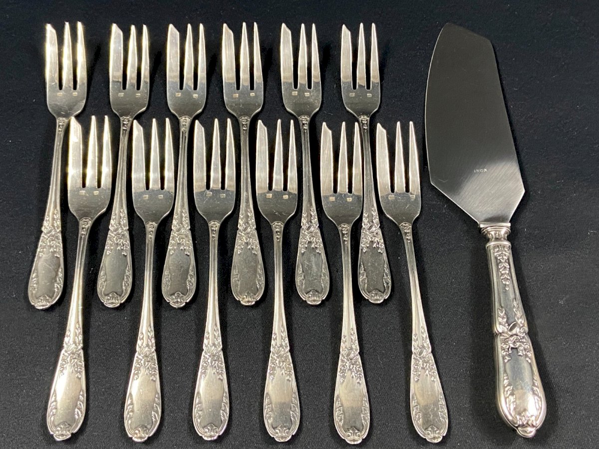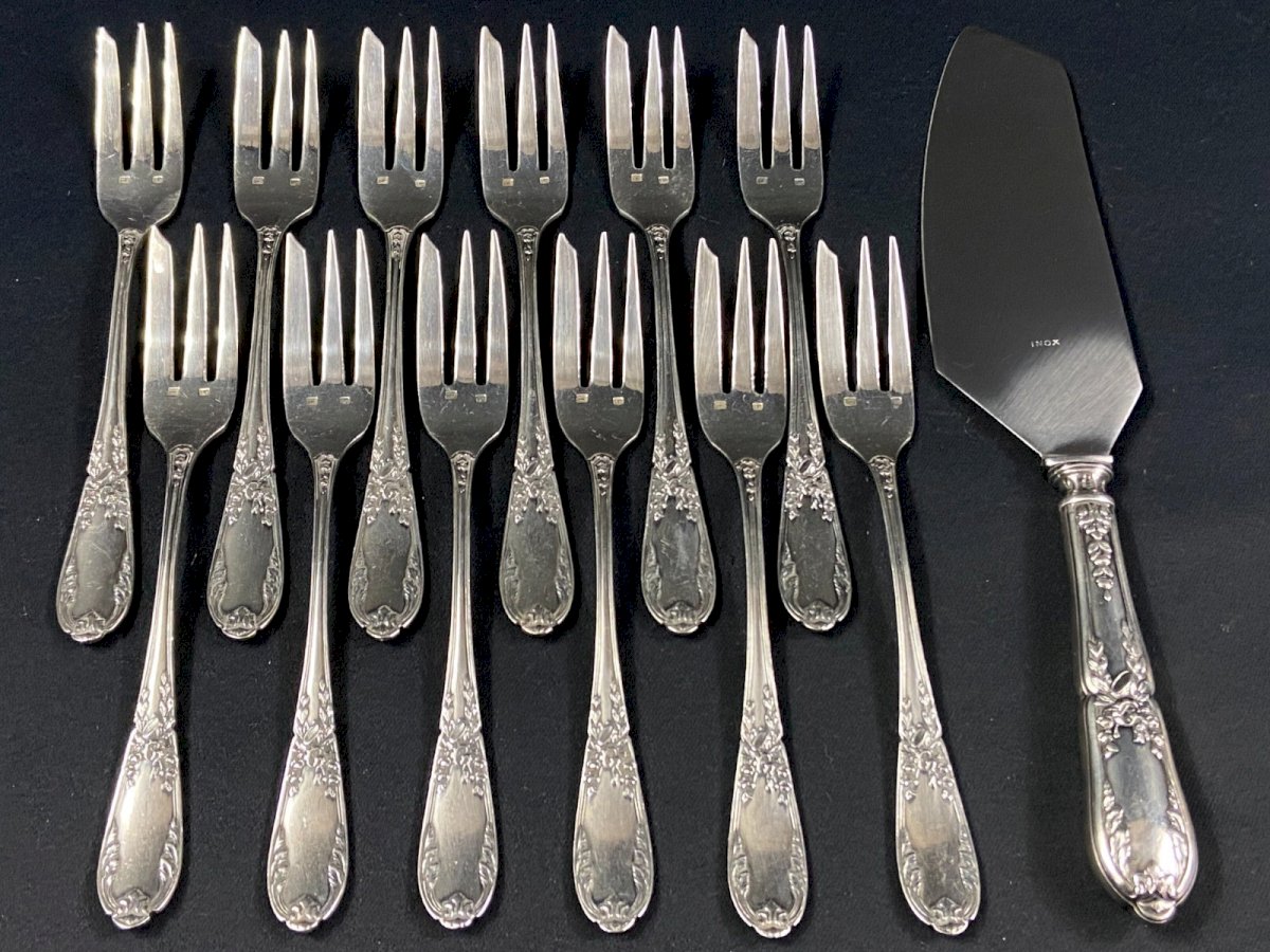 Service à dessert en métal argenté de style Louis XVI 12 fourchettes 1 pelle