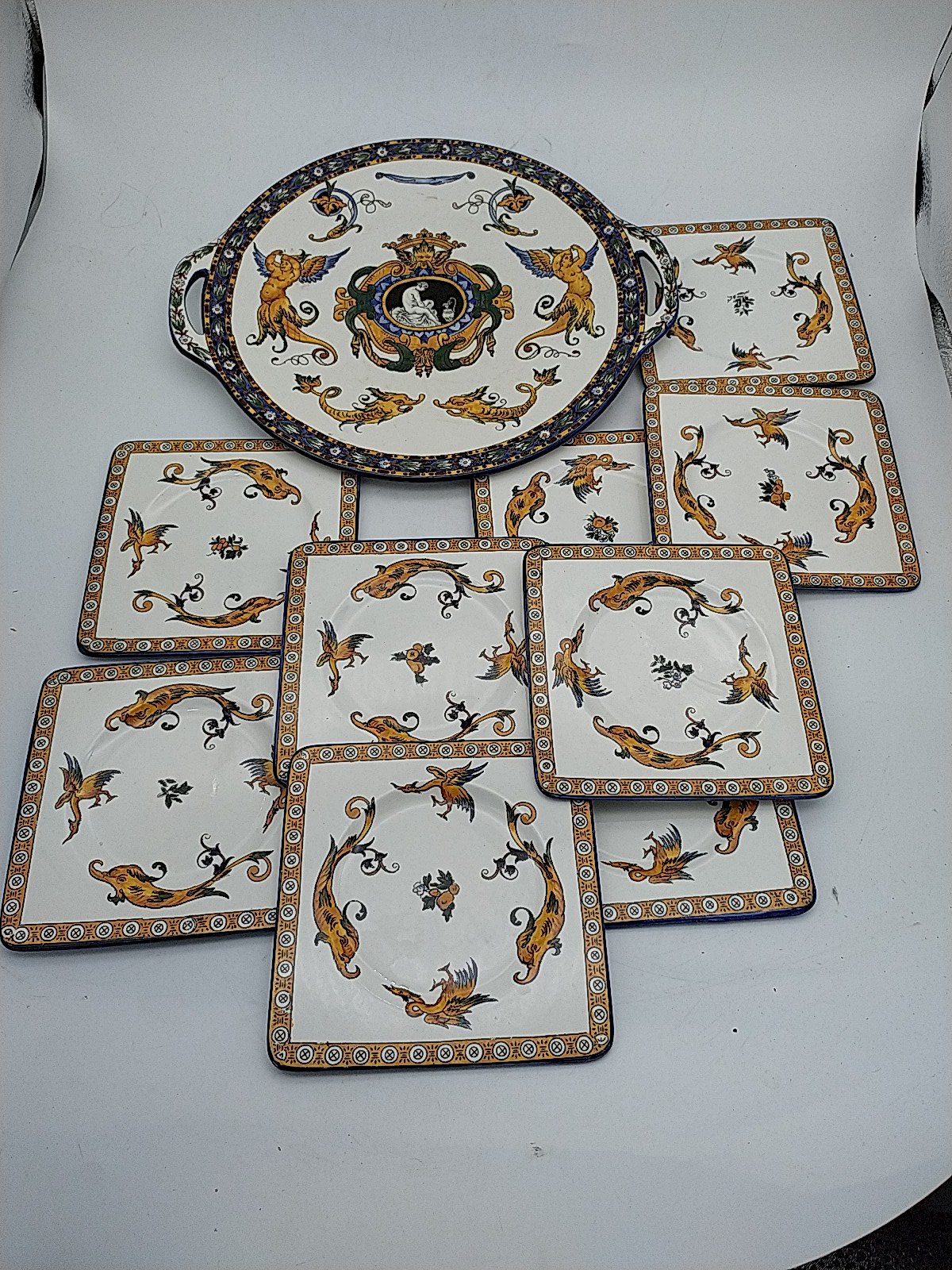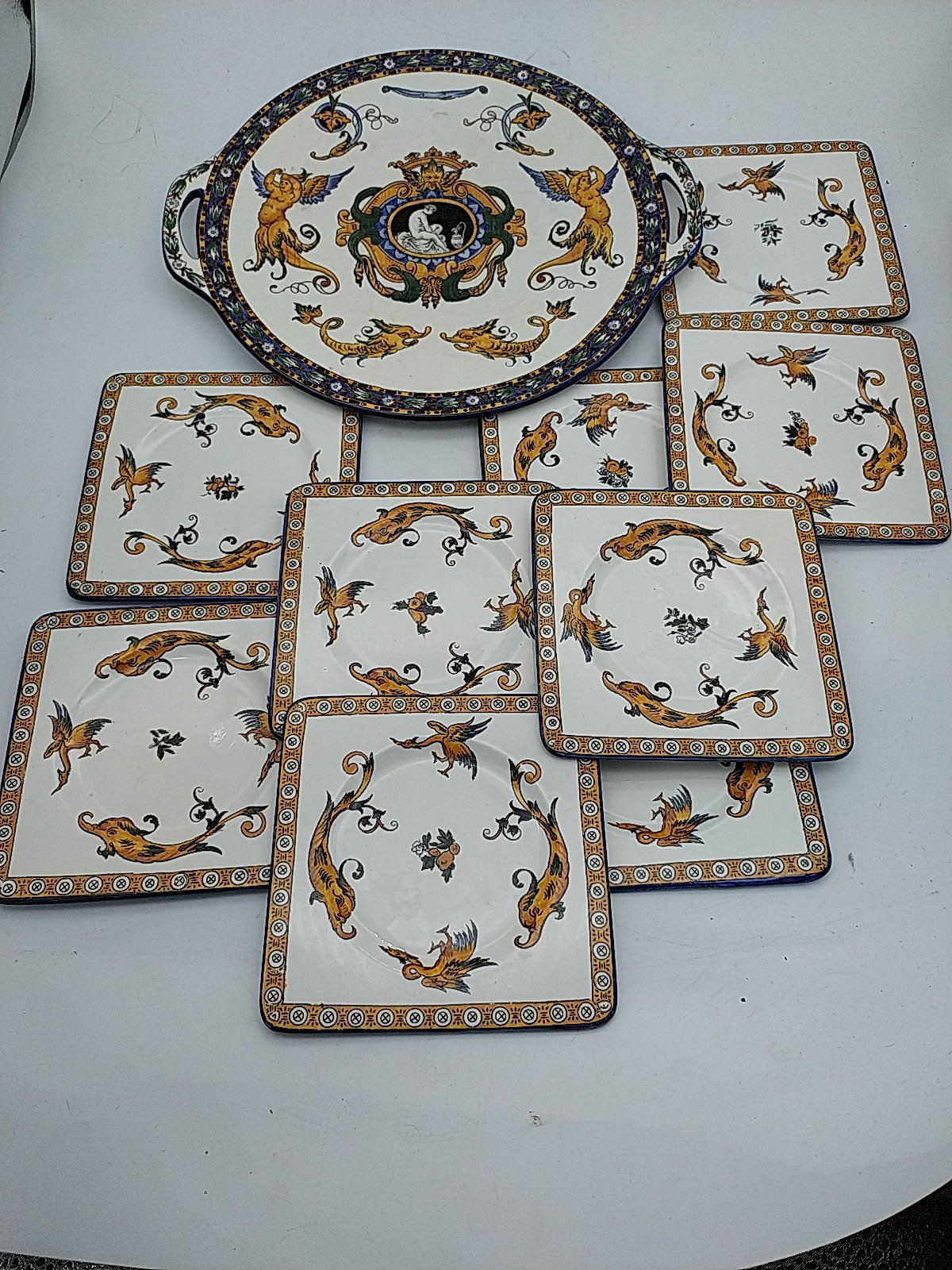 Service à gâteau . Gien renaissance . Faïence Abstrait/Illustration