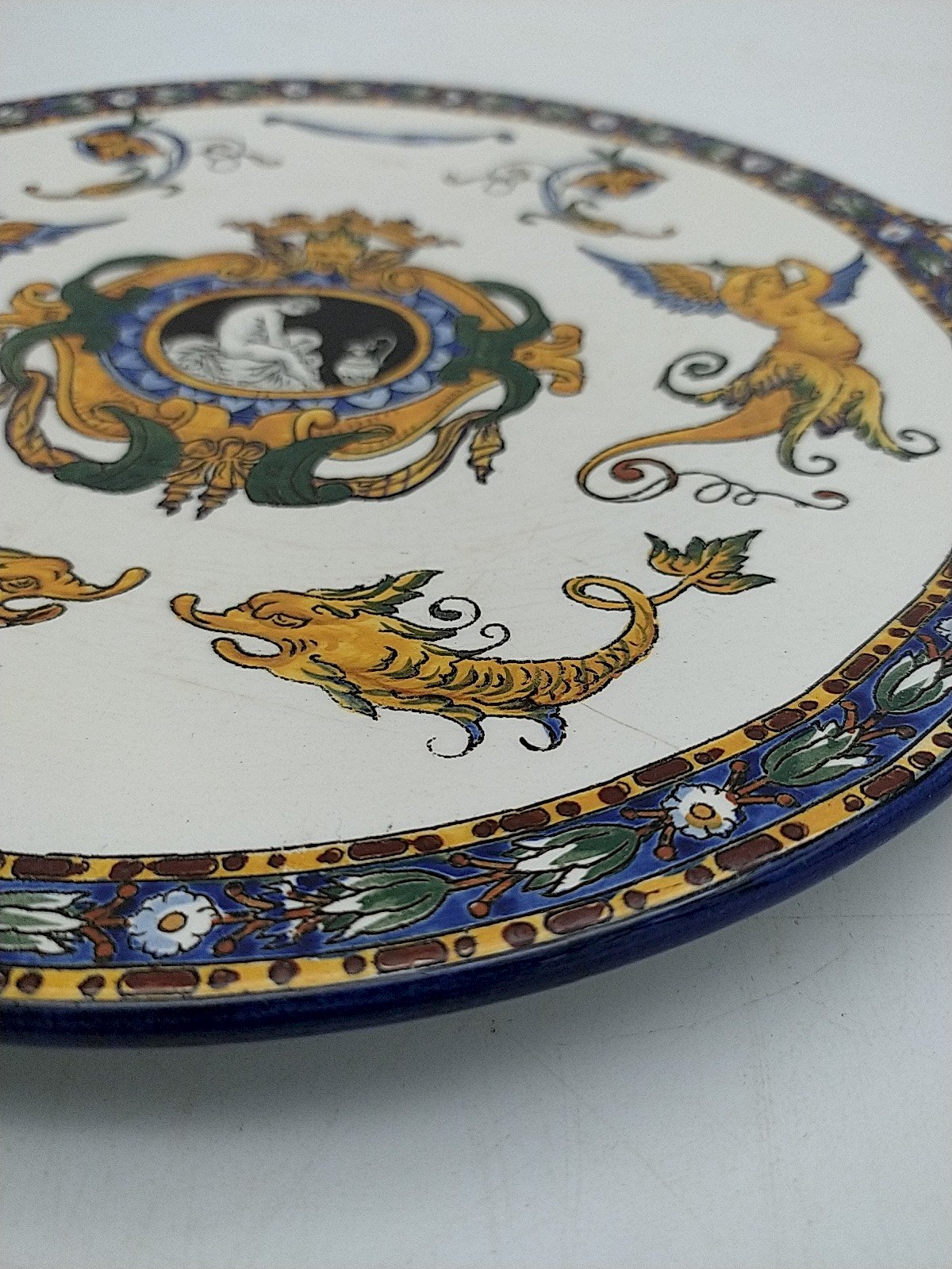 *BELLE ASSIETTE CERAMIQUE de GIEN RENAISSANCE FOND BLEU COLLECTION VITRINE D