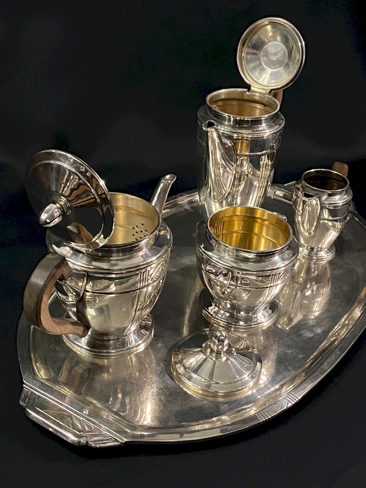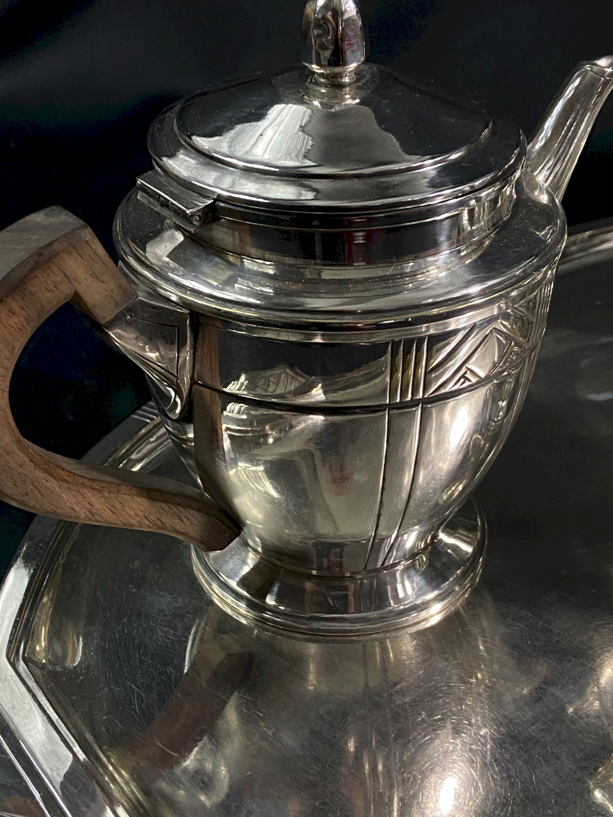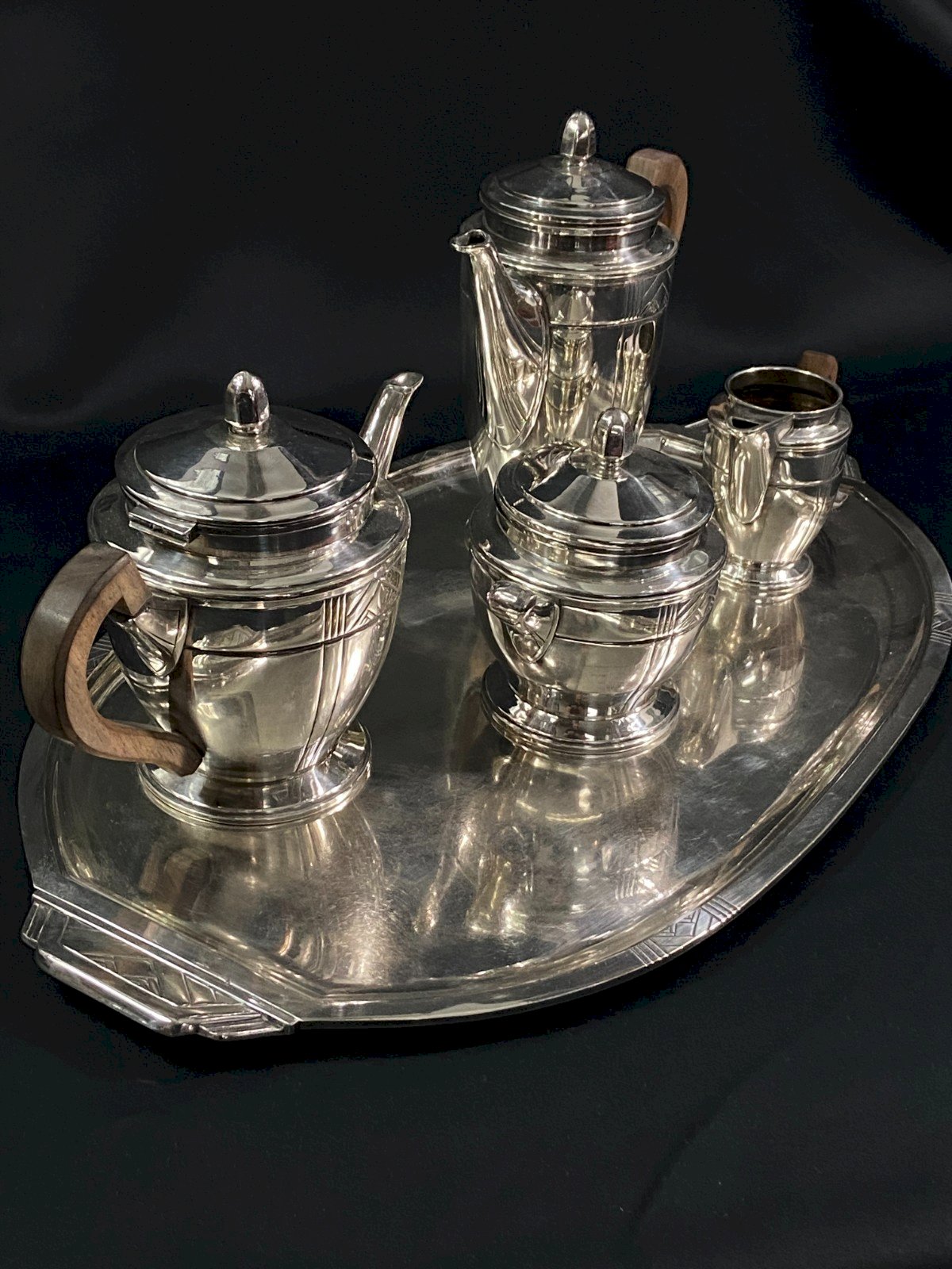 Service à thé et à café en métal argenté design Art déco avec plateau de service