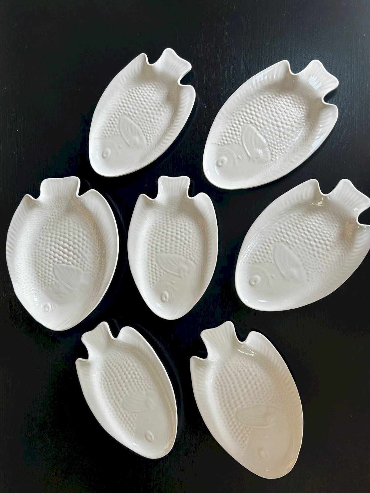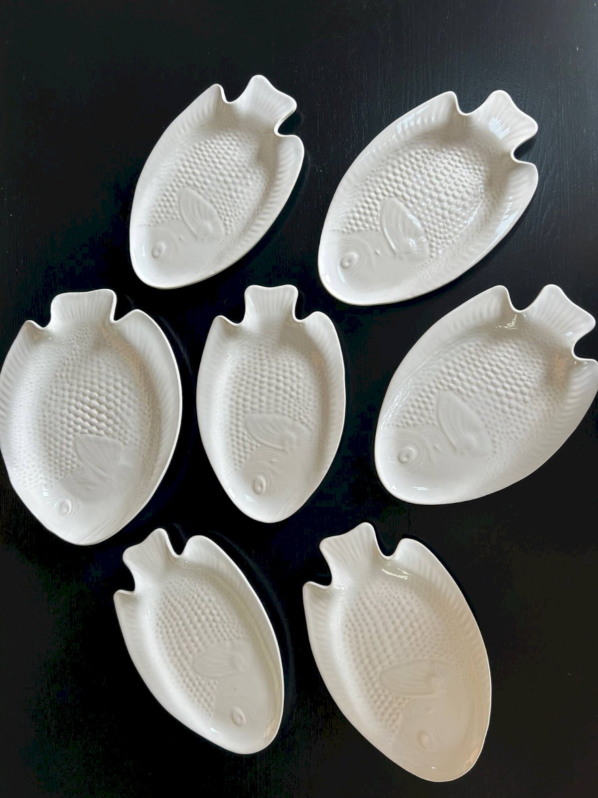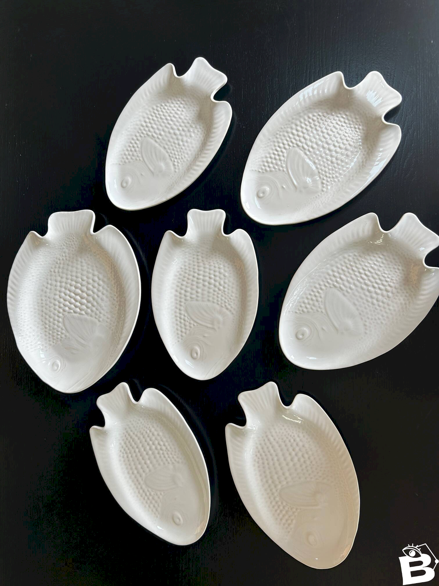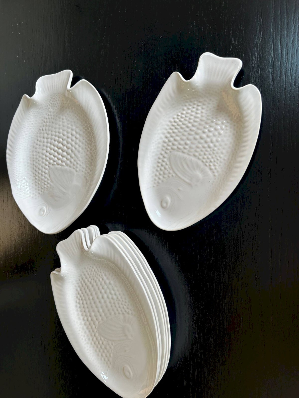 Service dassiettes et plat en porcelaine poisson Blanc Céramique
