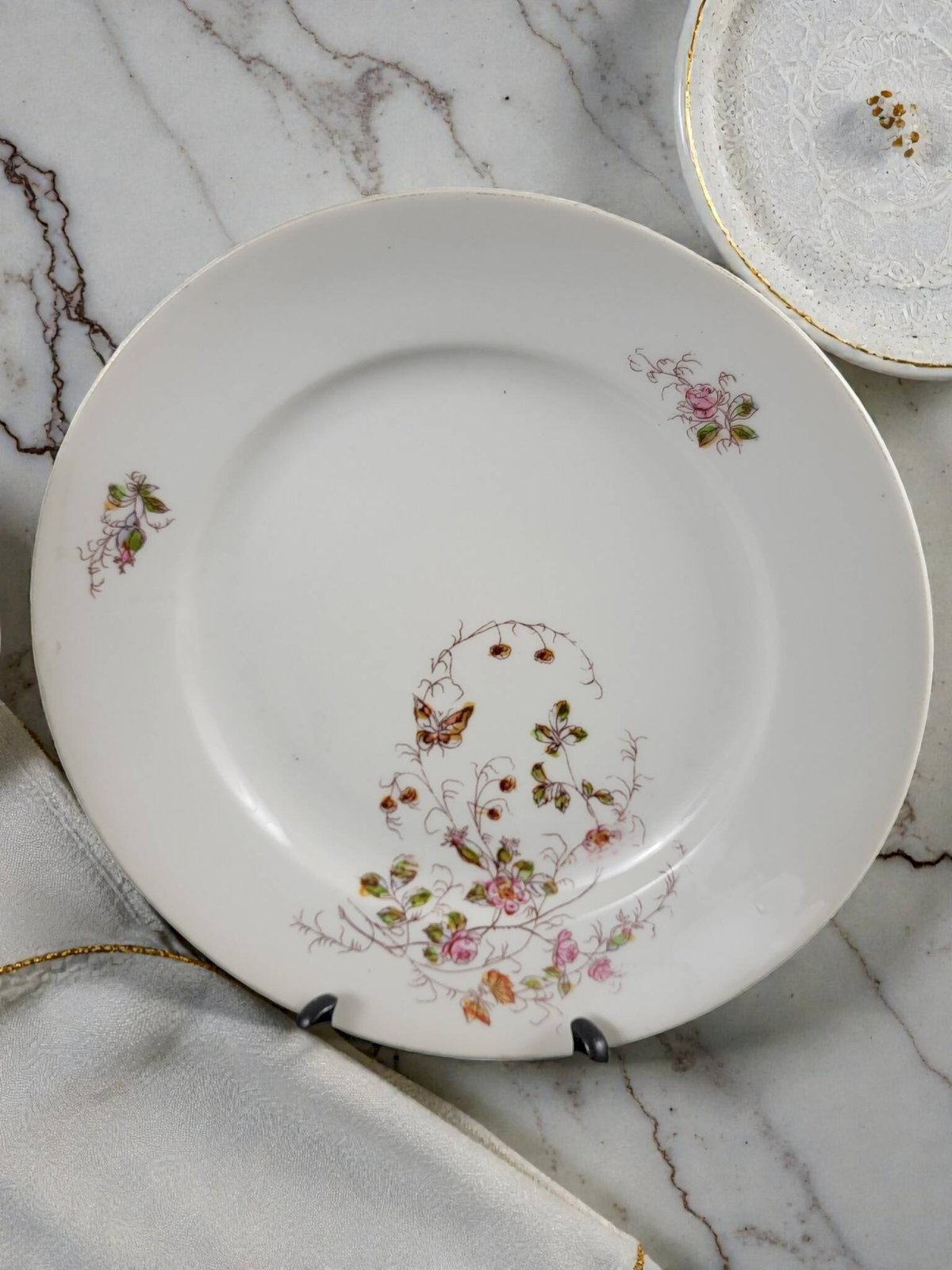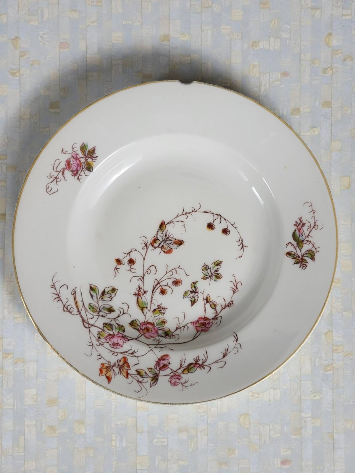 Assiette porcelaine début XXème Gien ou Creil, Oiseaux, Ville St Denis, 3/3