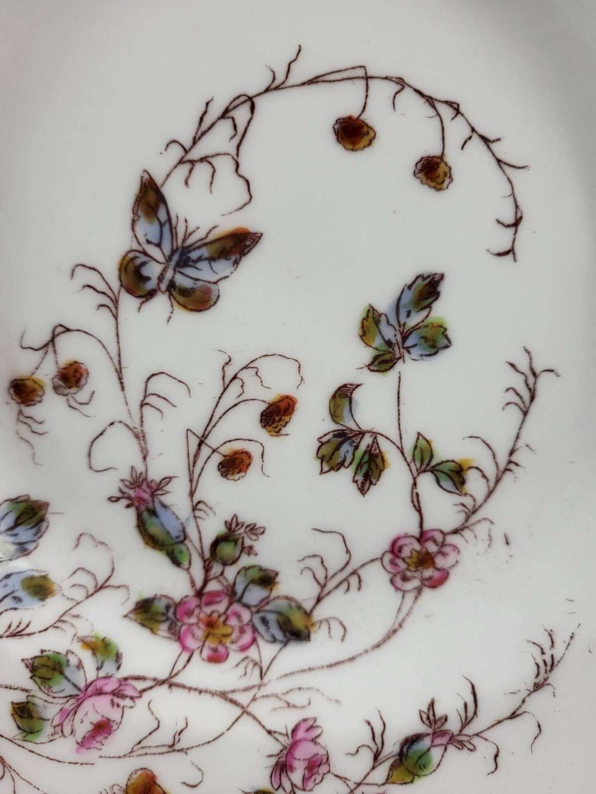 Assiette porcelaine début XXème Gien ou Creil, Oiseaux, Ville St Denis, 2/3