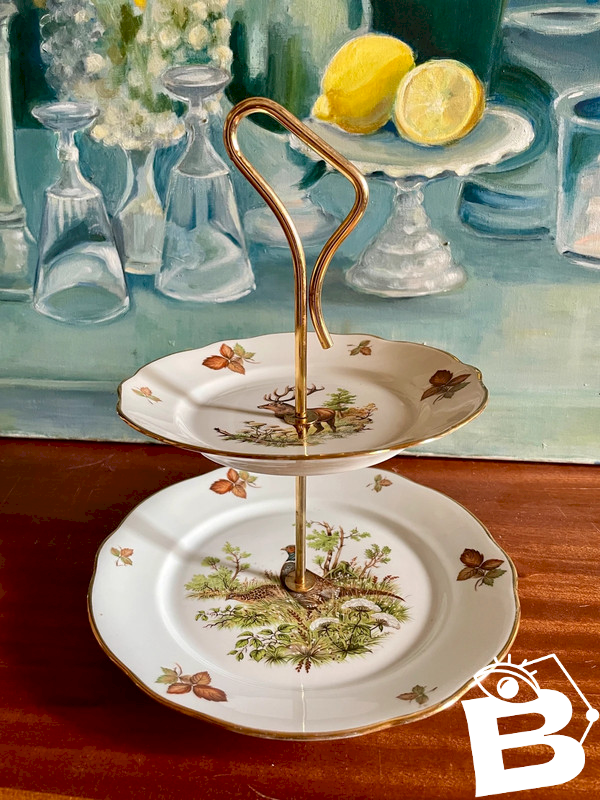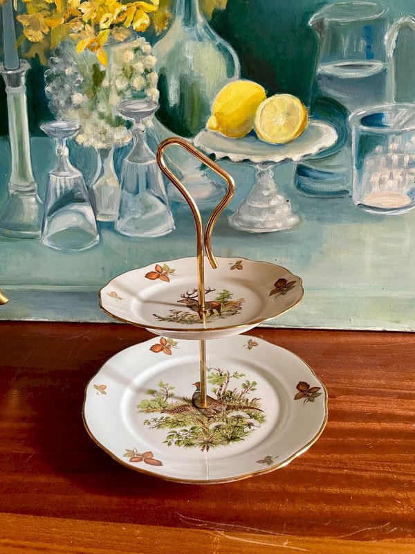 Serviteur en porcelaine thème Chasse vintage Blanc/Doré