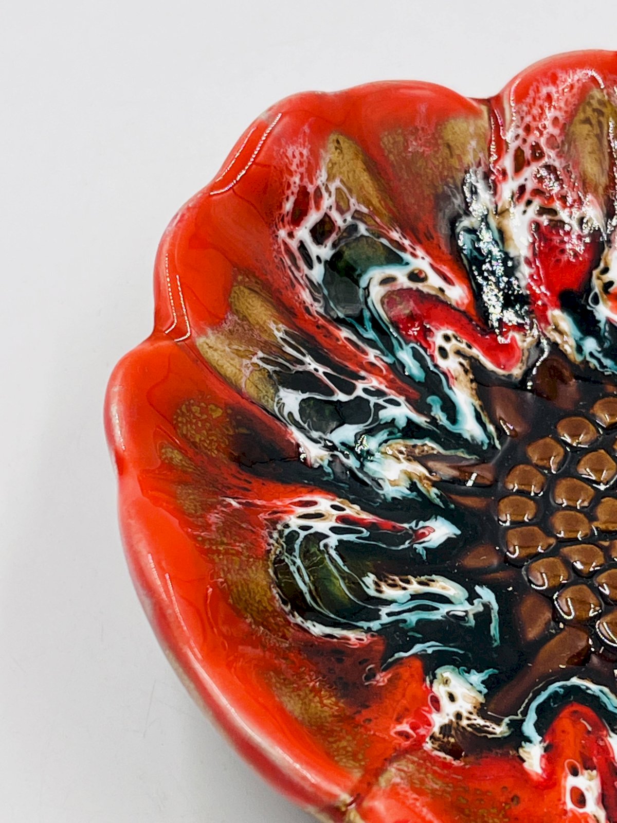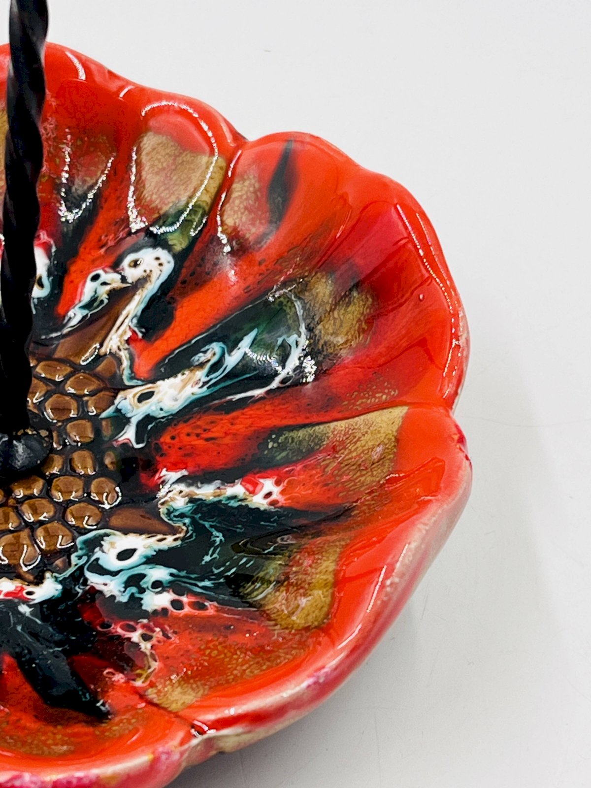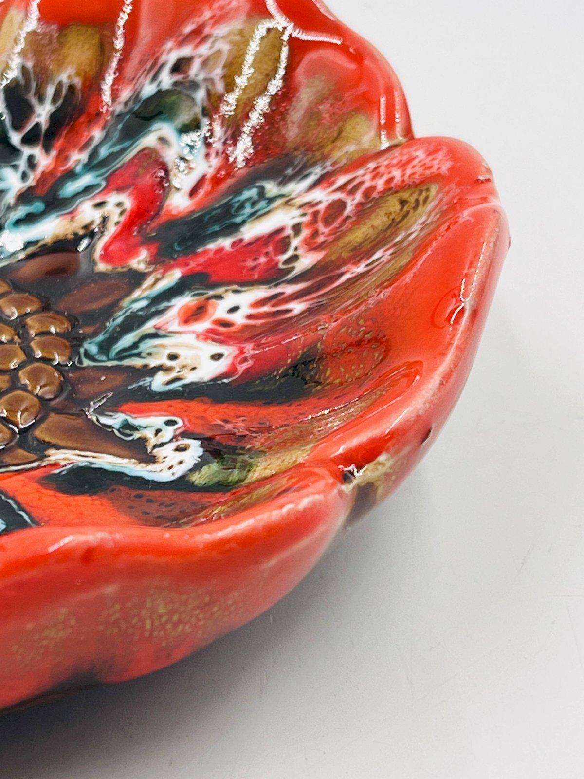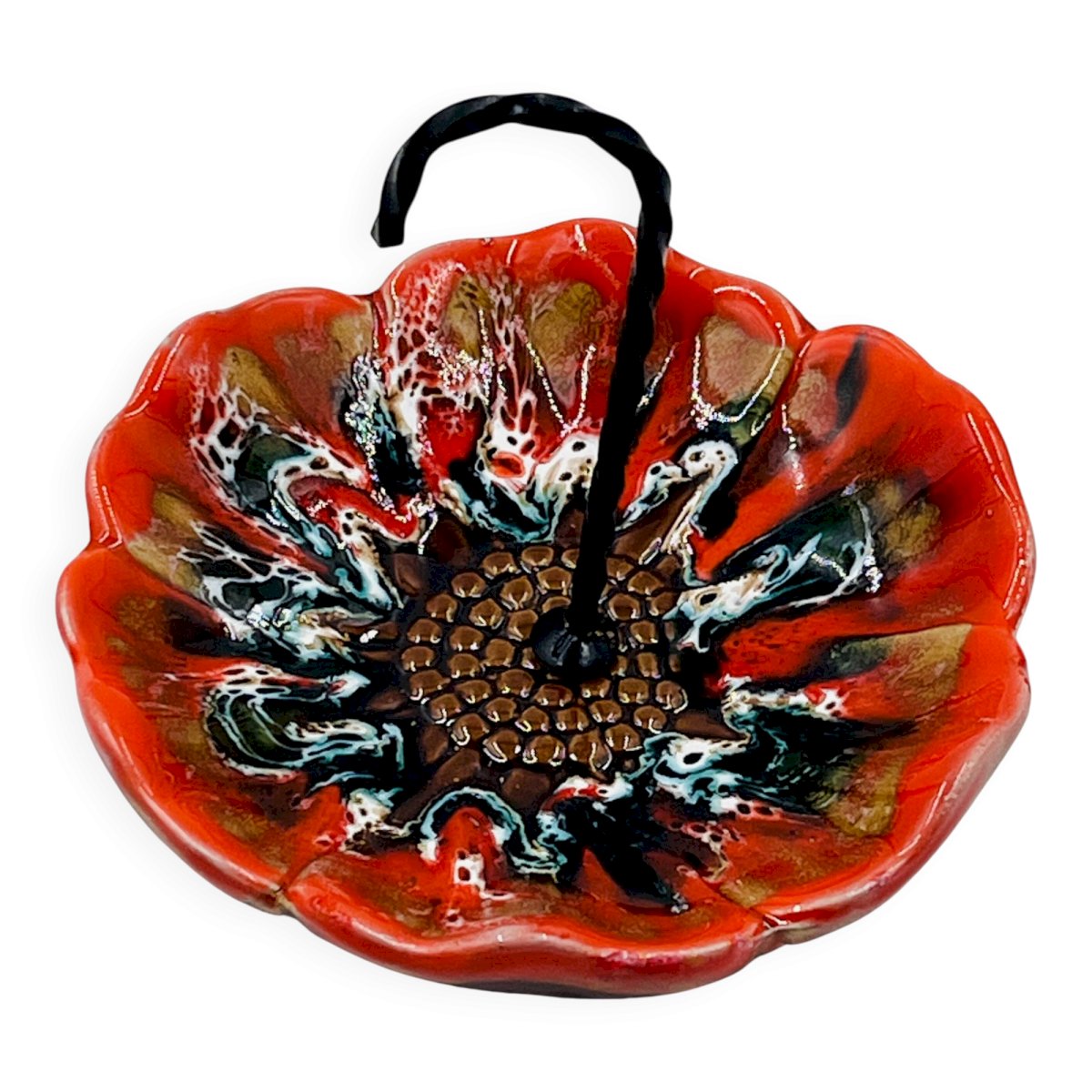 Sa forme florale et ses couleurs vives en font un objet décoratif unique et captivant.- Fabriqué en céramique de haute qualité, ce serviteur est à la fois durable et esthétiquement plaisant.- Les nuances de rouge, de brun et de noir se marient harmonieusement pour créer un effet visuel saisissant.- Idéal pour ajouter une note artistique à votre décoration intérieure, il peut être utilisé comme centre de table ou simplement comme objet d'art.N'attendez plus pour enrichir votre espace avec cette pièce exceptionnelle de Vallauris.