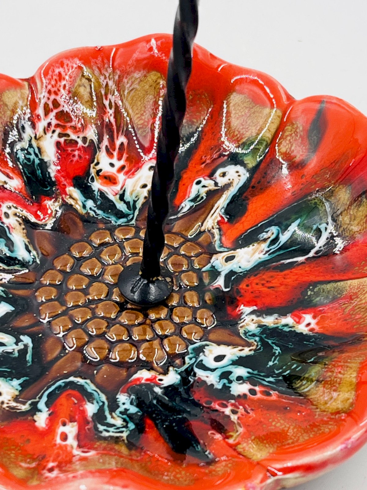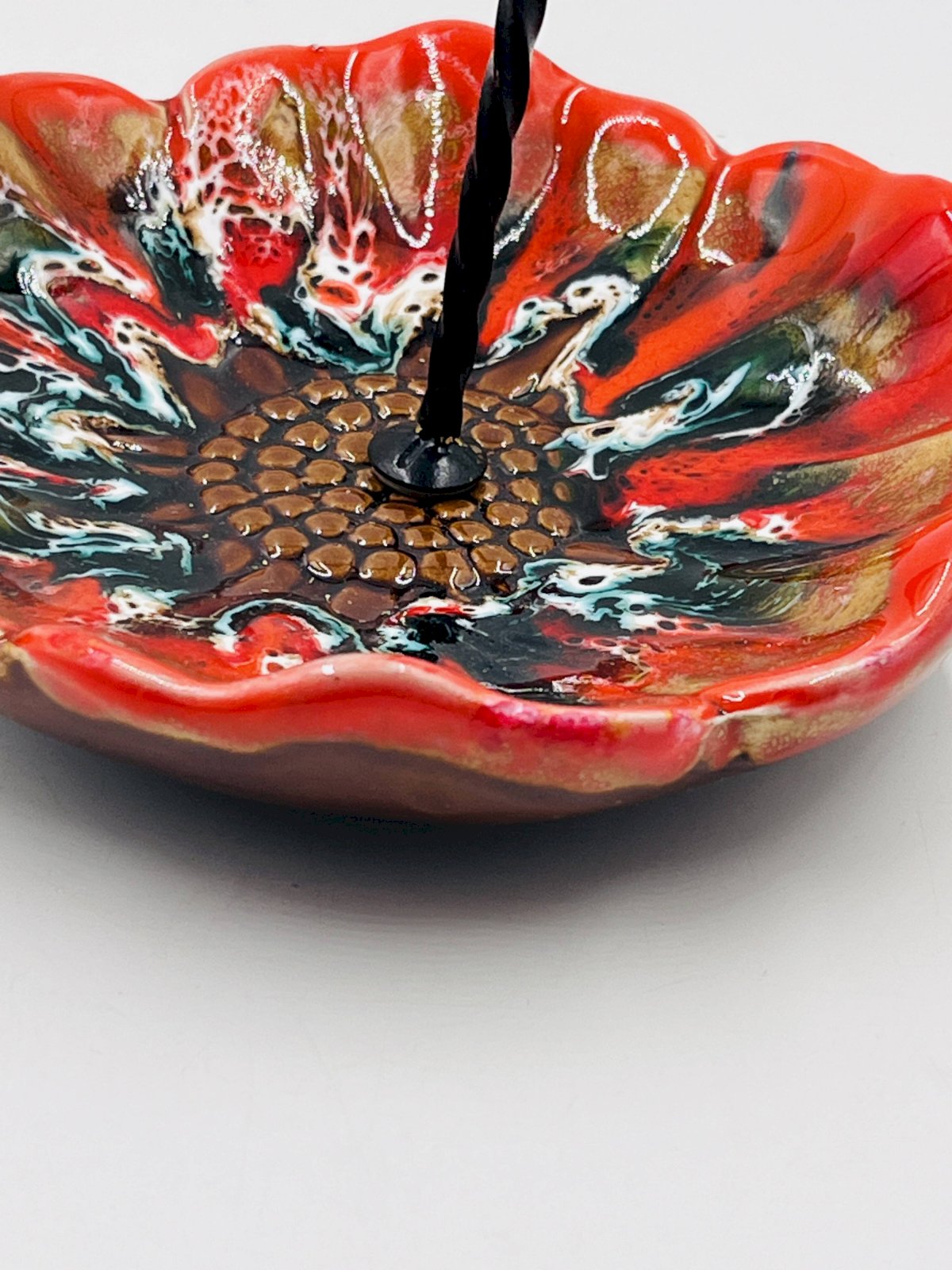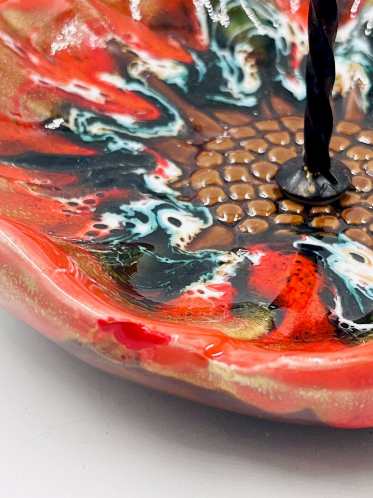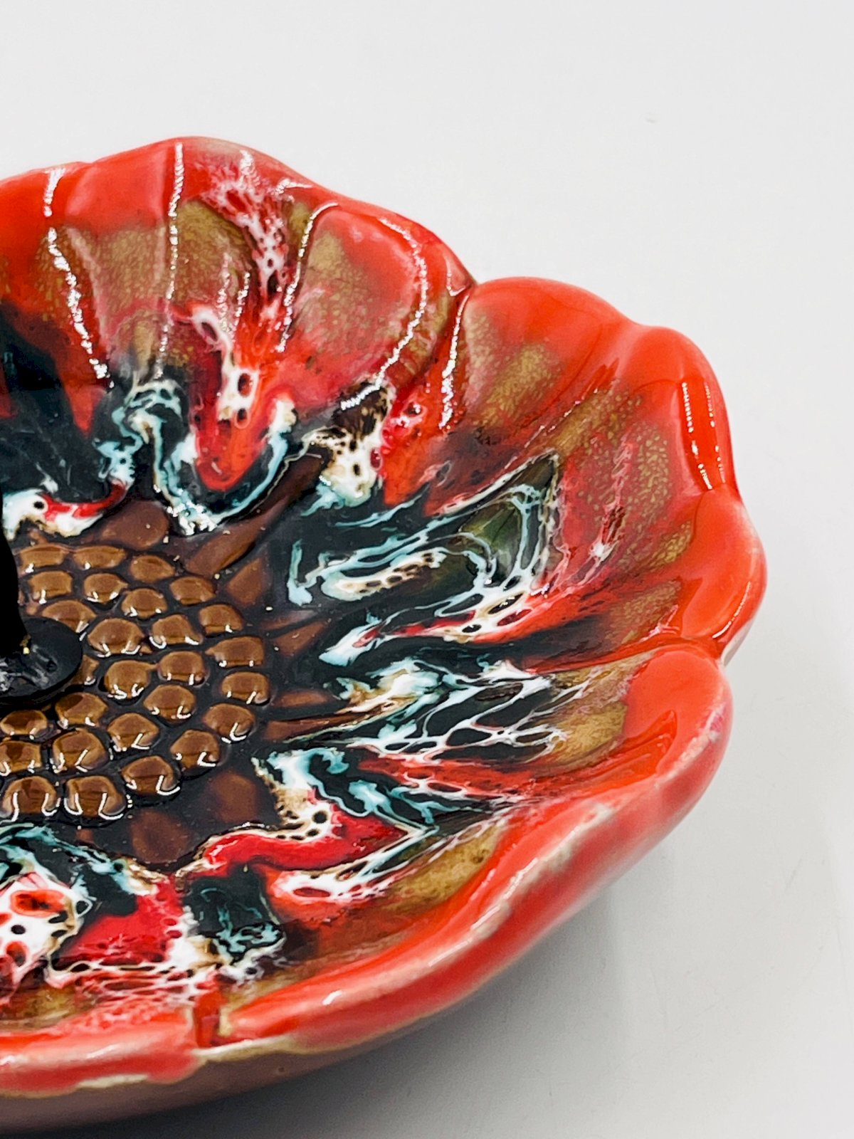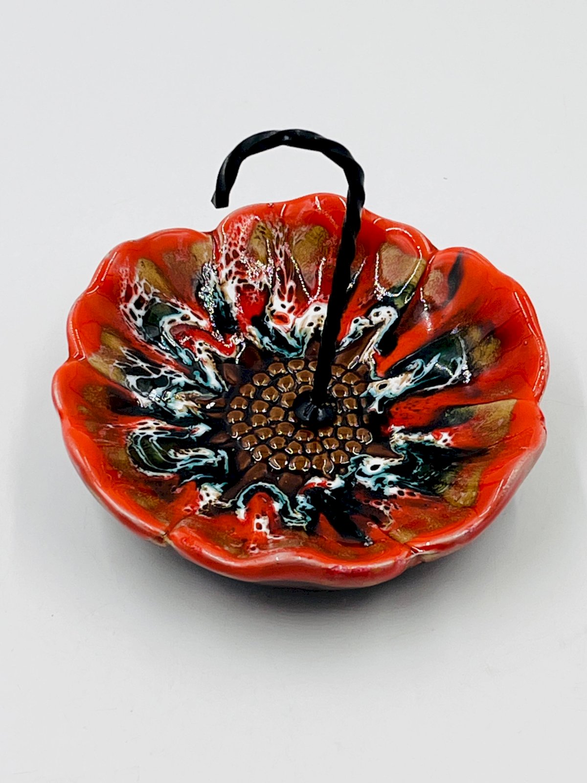 Sa forme florale et ses couleurs vives en font un objet décoratif unique et captivant.- Fabriqué en céramique de haute qualité, ce serviteur est à la fois durable et esthétiquement plaisant.- Les nuances de rouge, de brun et de noir se marient harmonieusement pour créer un effet visuel saisissant.- Idéal pour ajouter une note artistique à votre décoration intérieure, il peut être utilisé comme centre de table ou simplement comme objet d'art.N'attendez plus pour enrichir votre espace avec cette pièce exceptionnelle de Vallauris.