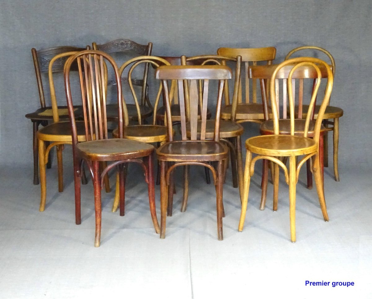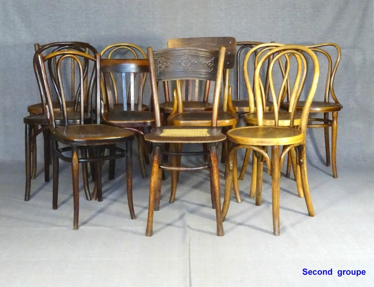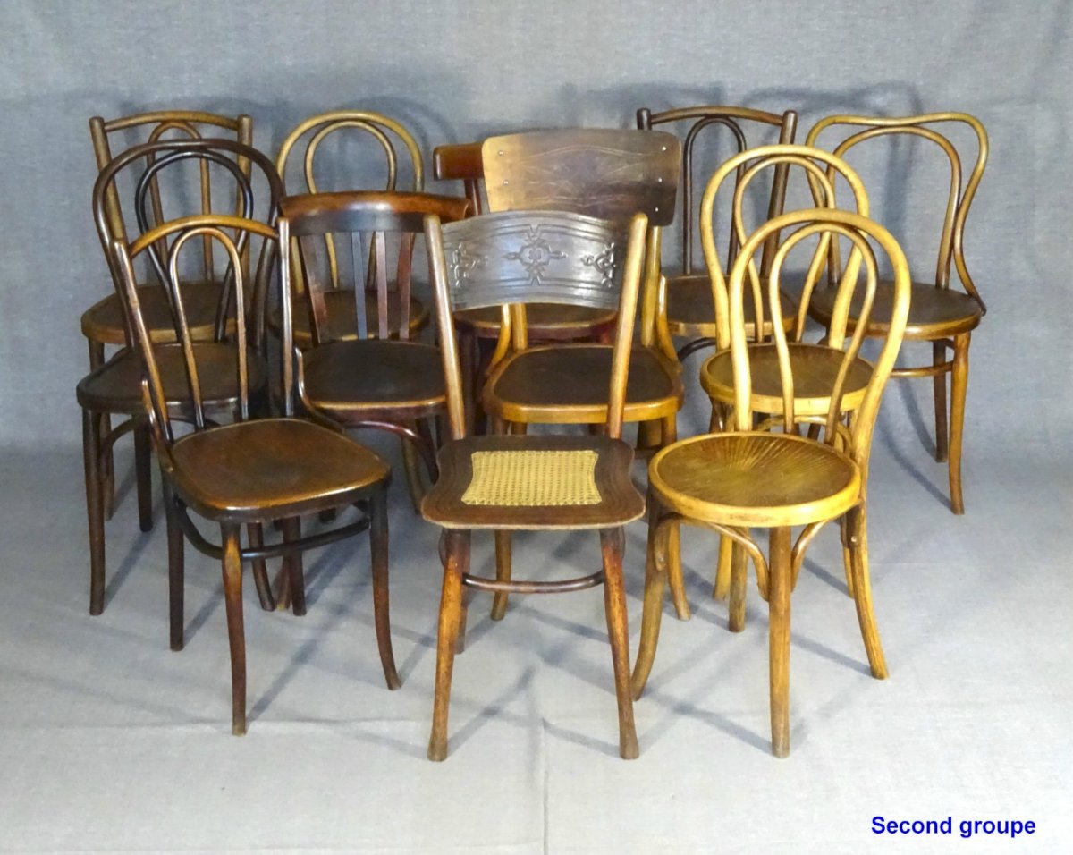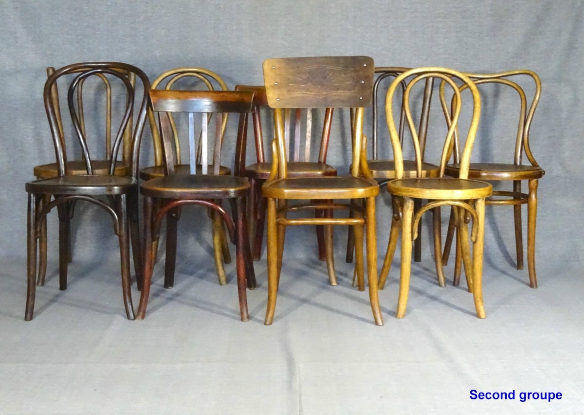 Lot de 24 chaises bistrot dépareillées des années 1925 à 1955. Elles sont toutes en état de service, stables, solides. Ce sont de vraies chaises bistrot , toutes sont en bois courbé, de dimensions faites pour optimiser la place autour des tables. Les hauteurs d’assises sont entre 46 et 47 cm. Marques : Baumann, Fischel , Kohn , Thonet et diverses marques de bonne facture.   Suivant besoin nous pouvons fournir une dizaine de chaises supplémentaires ayant les mêmes critères de sélection.   Nous avons présenté ce lot en deux groupes de photos, rang par rang, afin que les détails soient visibles.   Plus de photos et renseignements sur demande. Livraison France possible sur devis. Retrait gratuit Alsace Couleur:Bois Type:Chaise Marque:Plusieurs, Thonet Baumann Origine:Europe Période:Design du XXème Sous-type:Bistrot Matière:Hêtre Style:1940-1960