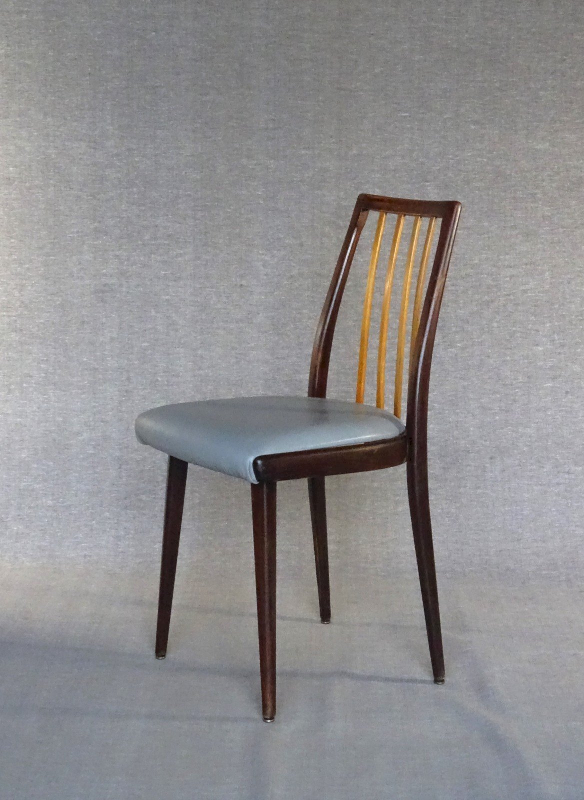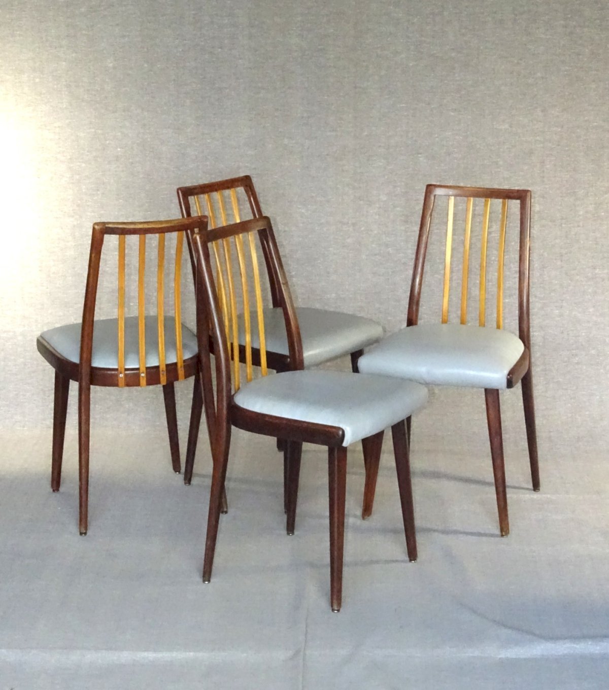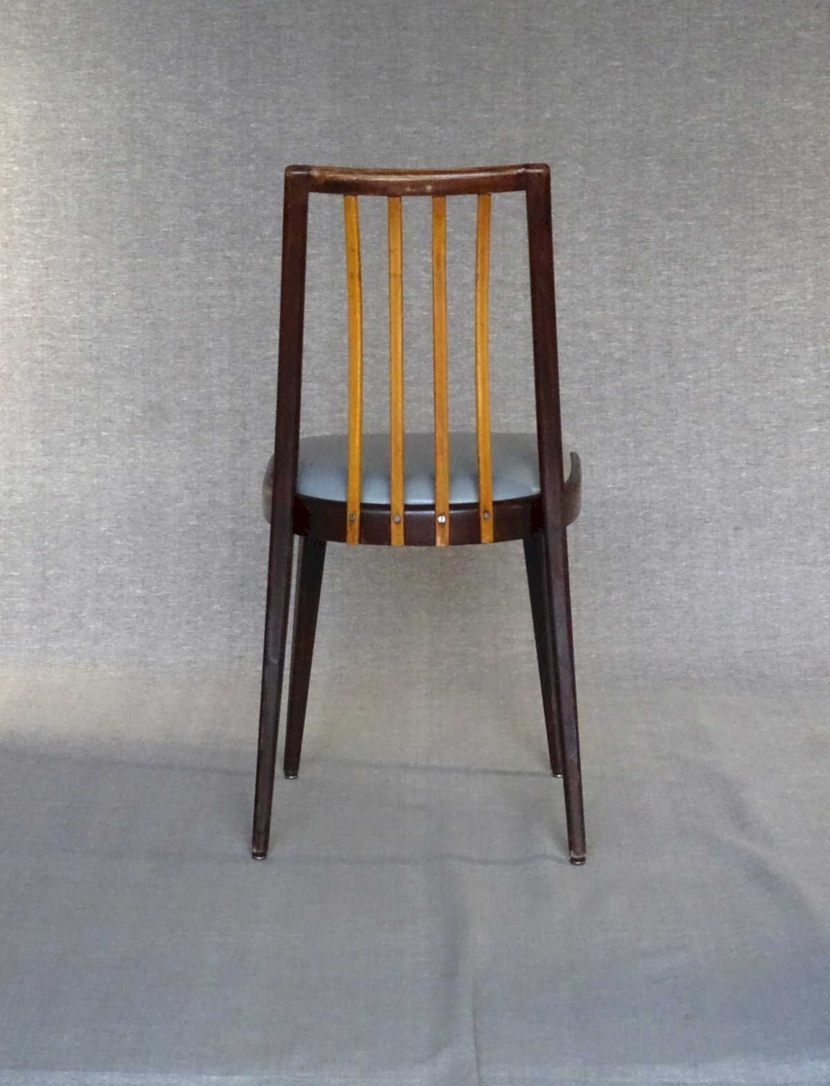 Set de 4 chaises bicolores Thonet 1960 assises cuir gris clair.