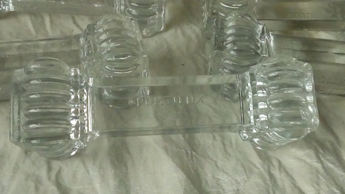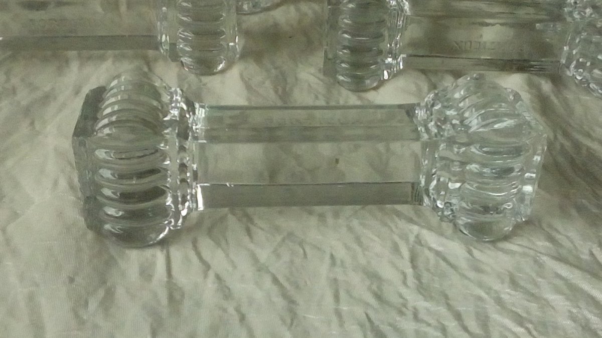 SET DE 5 PORTE COUTEAUX EN CRISTAL MODÈLE BAMBOU SIGNES PORTIEUX LONGUEUR 9 cm HAUTEUR 2.50 cm LARGEUR 2.50 cm Pays d'origine:France