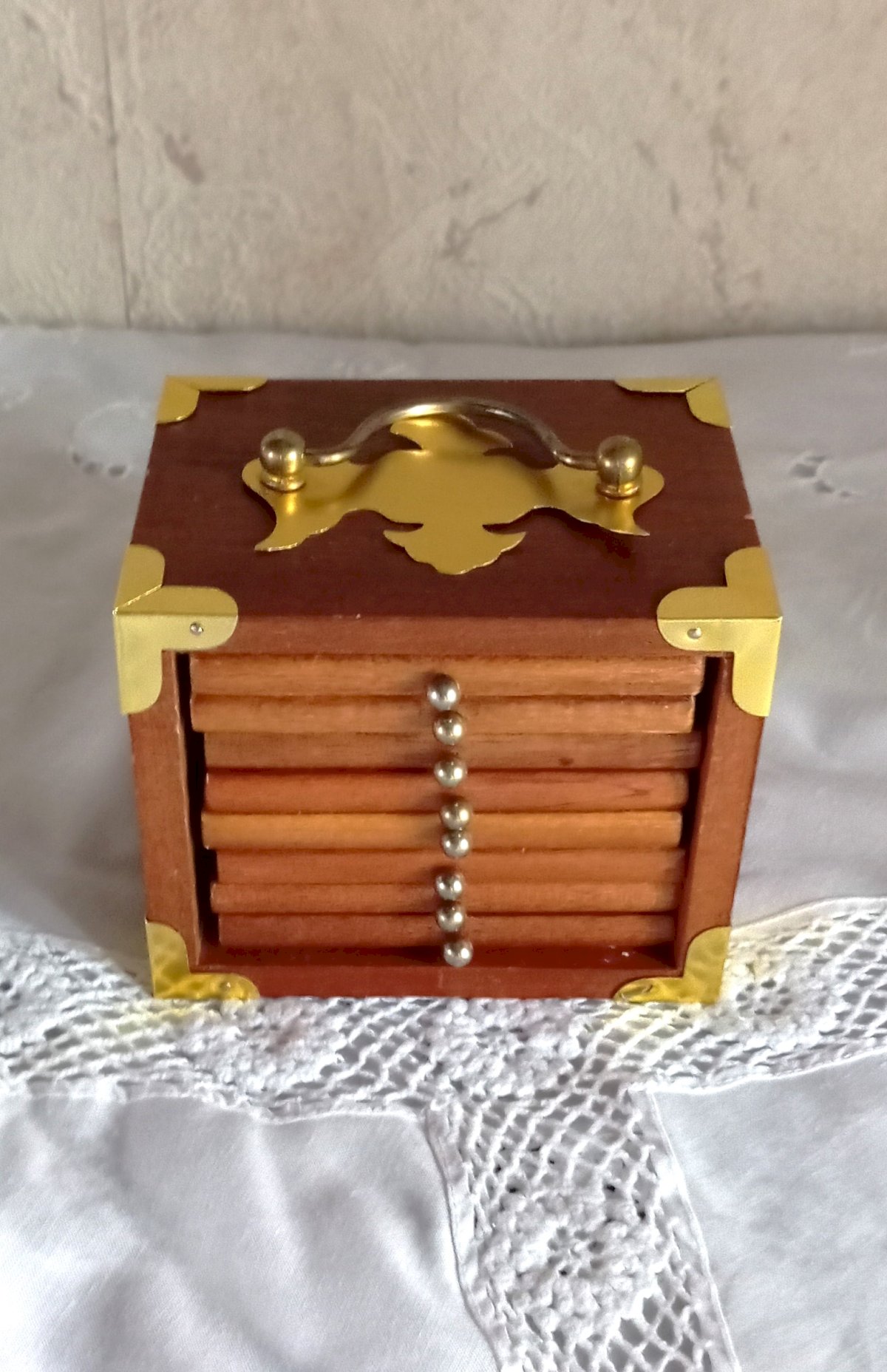 Set de dessous de verre vintage en bois et liège avec coffret décoratif – Fait main,