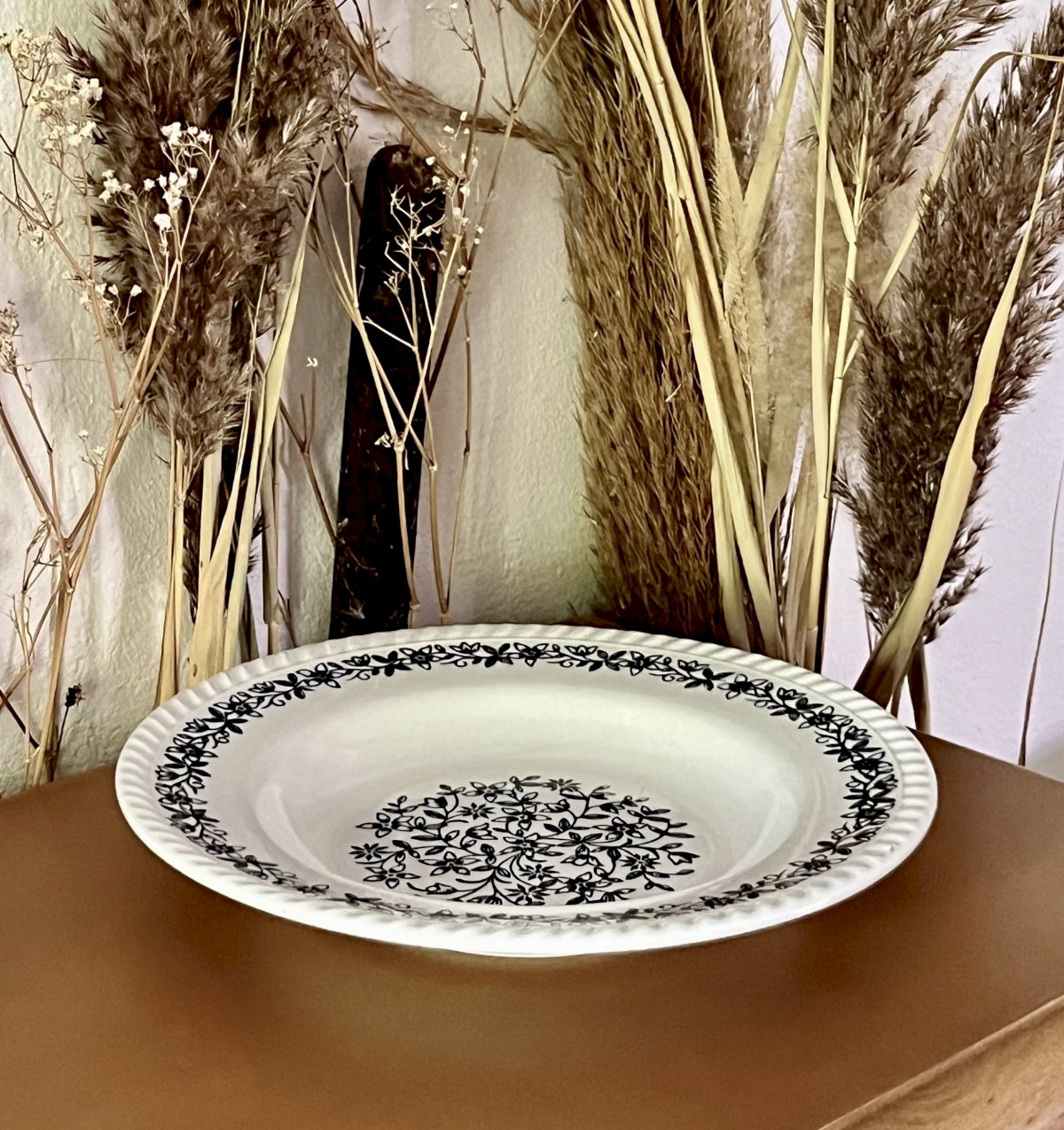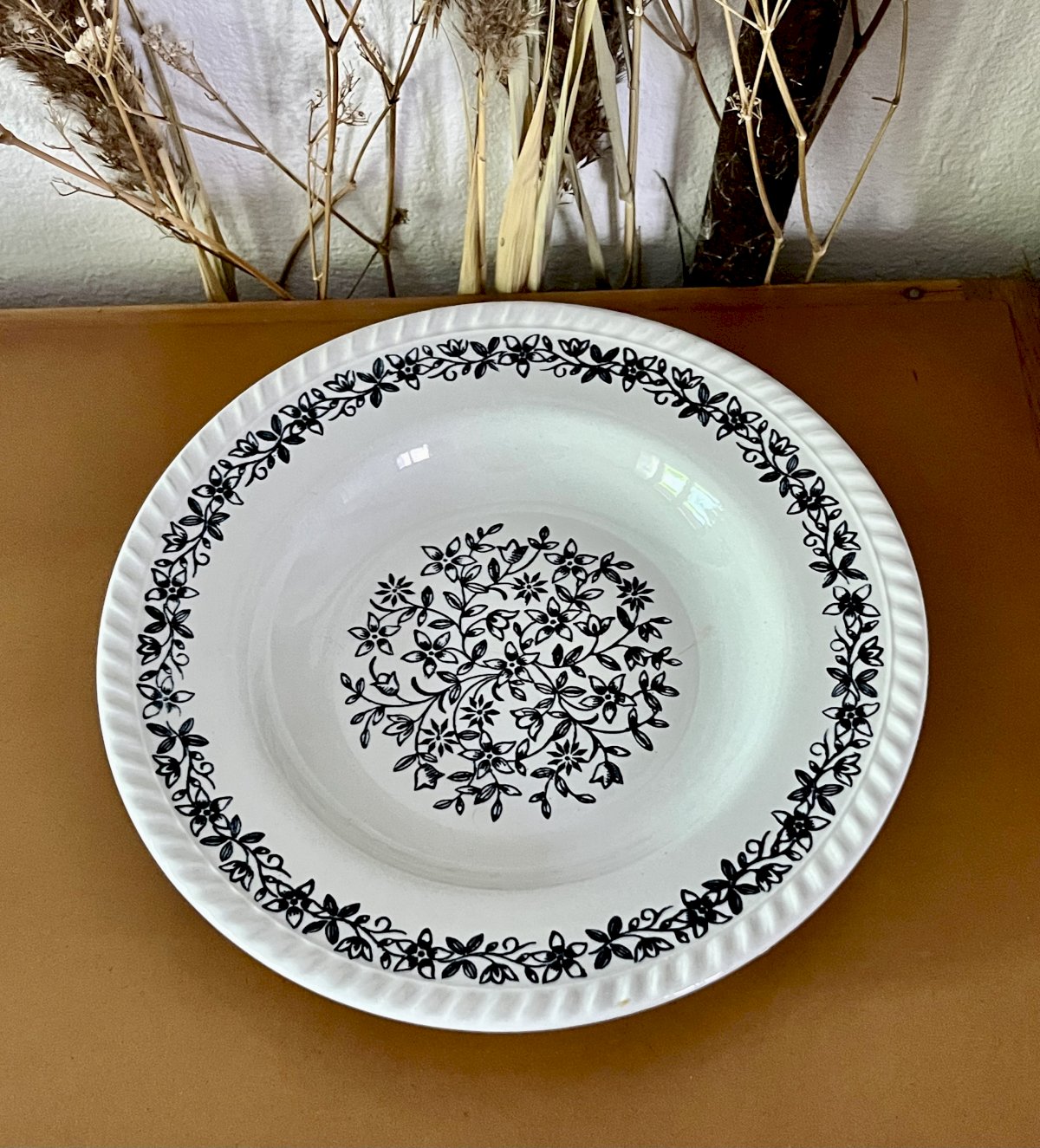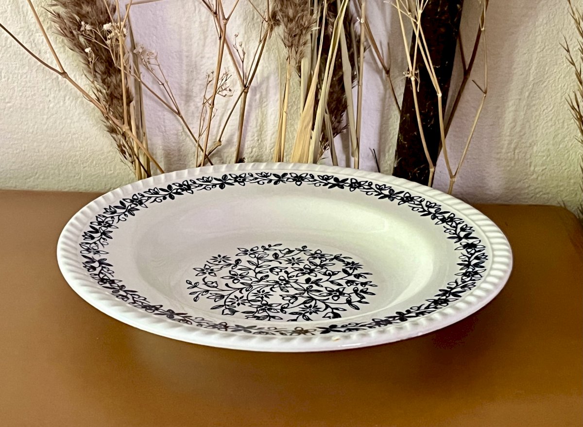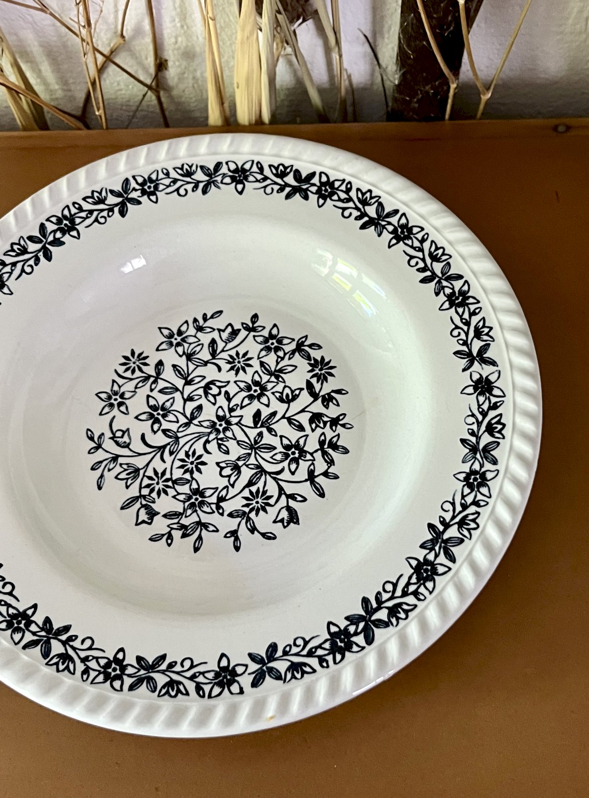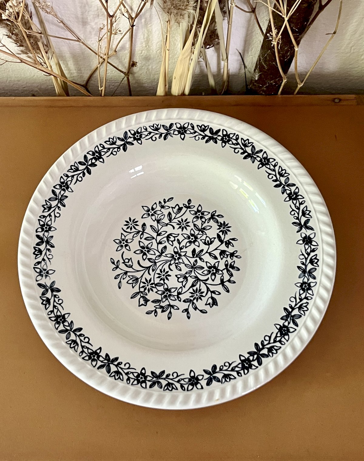 Assiette creuse vintage en porcelaine motifs fleurs bleues