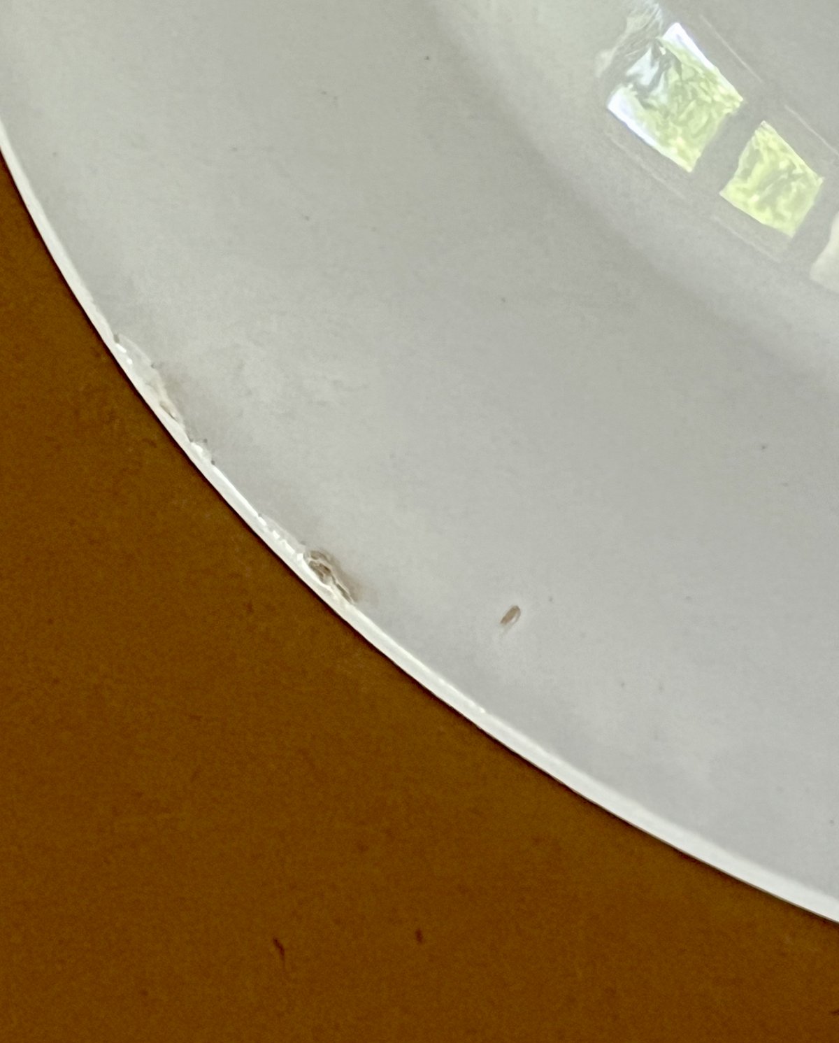 - 1 minuscule égrenure sur le rebord interne (faut vraiment la chercher pour la voir...)