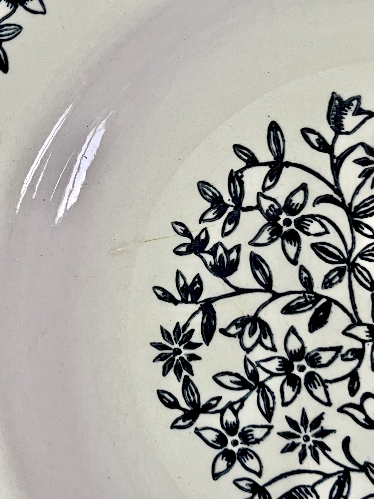 Apportez une touche d'authenticité à votre table avec cette assiette creuse à ailes en faïence opaque à motifs de fleurs bleues marines.