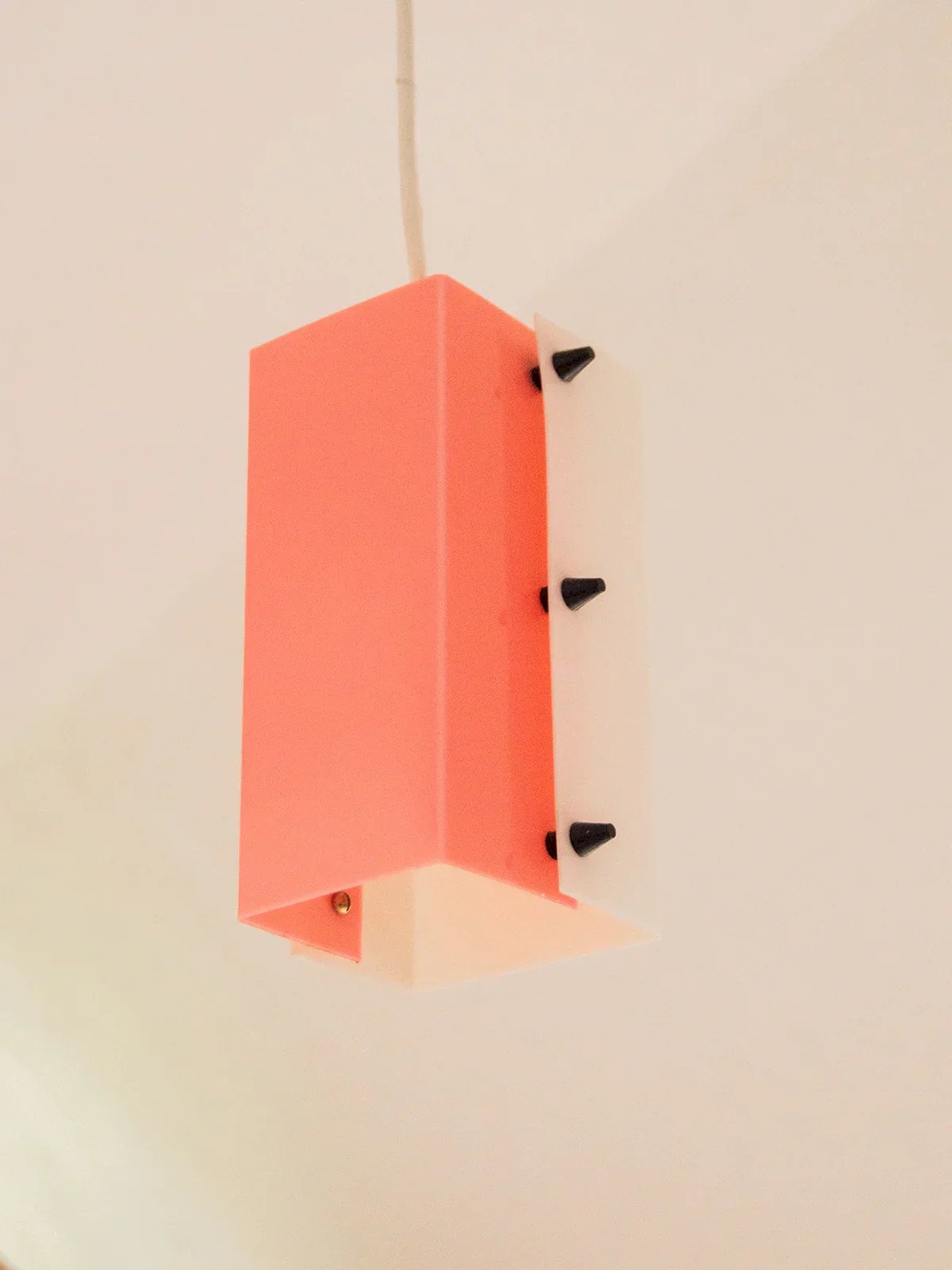 Découvrez nos élégantes suspensions rectangulaires aux délicates nuances de rose et blanche, embellies de petits pics noirs. Parfaites pour apporter une touche de modernité à votre intérieur, ces luminaires s’intègrent aisément dans tous les styles de décoration. Leur design unique et contemporain illuminera vos espaces avec une lumière douce et accueillante, créant ainsi une atmosphère chaleureuse et élégante. Deux lots de deux sont disponibles. Exclusivité web, la rencontre se fera chez vous ! Largeur : 9 cm Hauteur : 18 cm État:Occasion: Objet ayant été utilisé. Objet présentant quelques marques d'usure superficielle, ...Occasion: Objet ayant été utilisé. Objet présentant quelques marques d'usure superficielle, entièrement opérationnel et fonctionnant correctement. Il peut s'agir d'un modèle de démonstration ou d'un objet retourné en magasin après une courte période d'utilisation. les éventuelles imperfections. Marque:Debongout Type:Produit chiné Style:Contemporain Matériau:Plastique Vintage:Oui