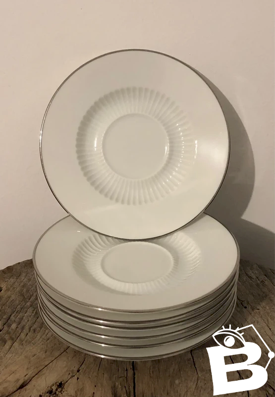 Soucoupes rétro vintage blanches et argentées en porcelaine Kaiser Blanc/Argenté
