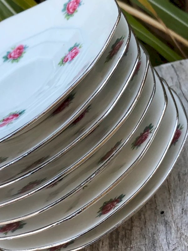 Soucoupes rétro vintage en porcelaine motifs petites fleurs roses