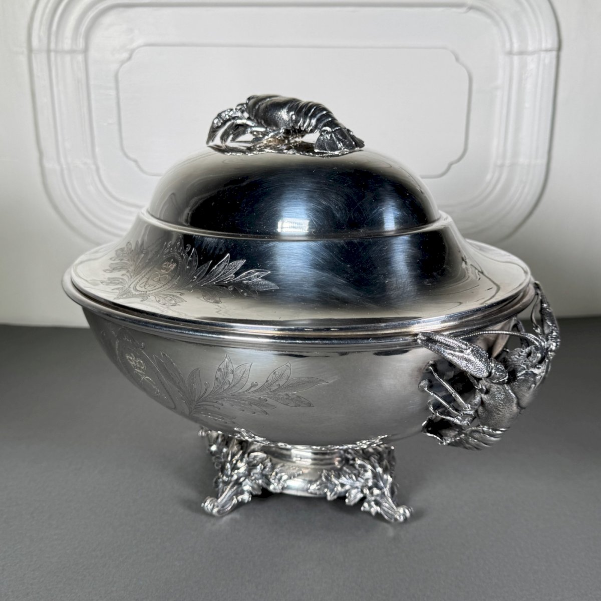 Soupière Christofle en métal argenté décor et prises en forme de homard M3934