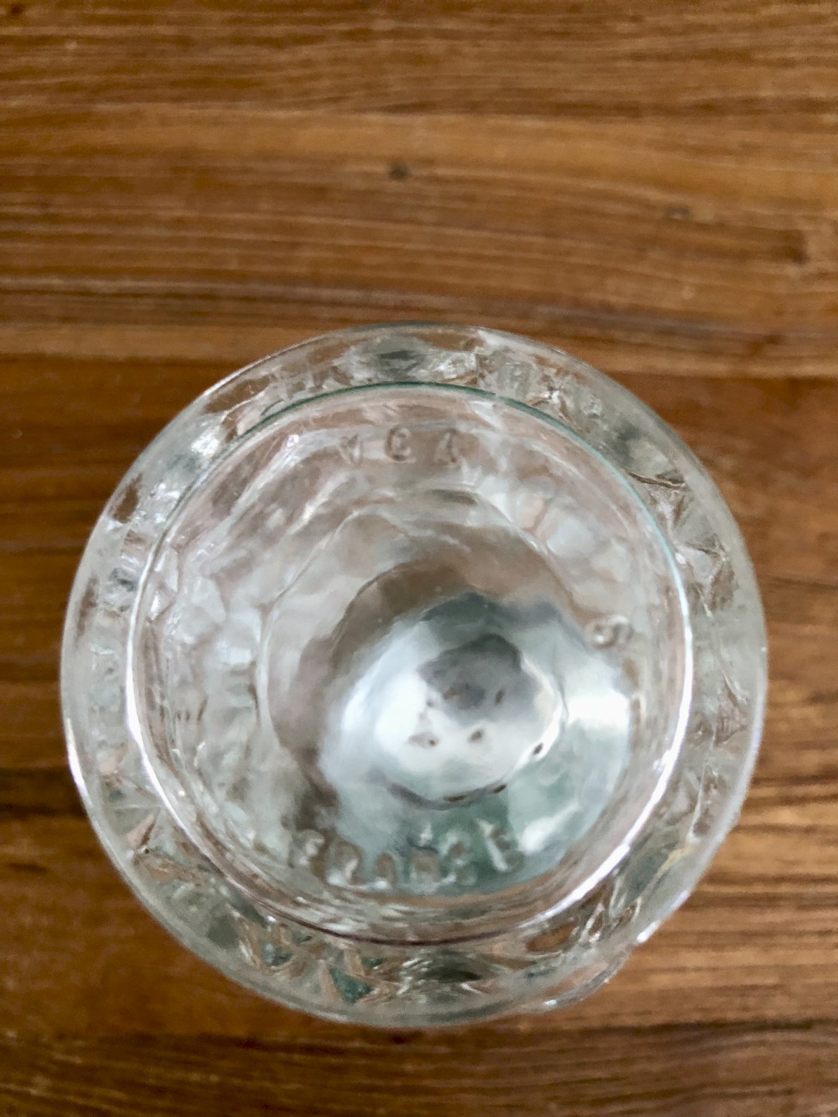 • En verre structuré et bouchon en métal.