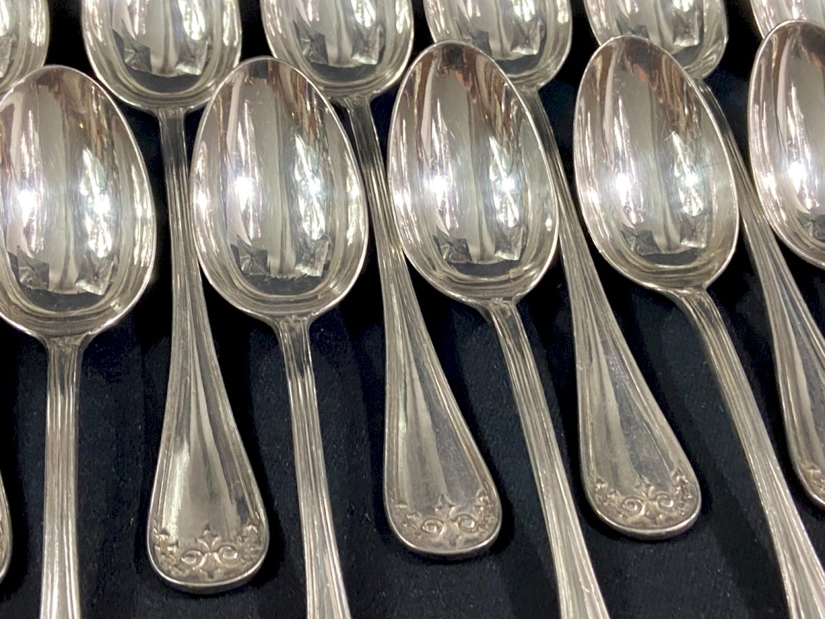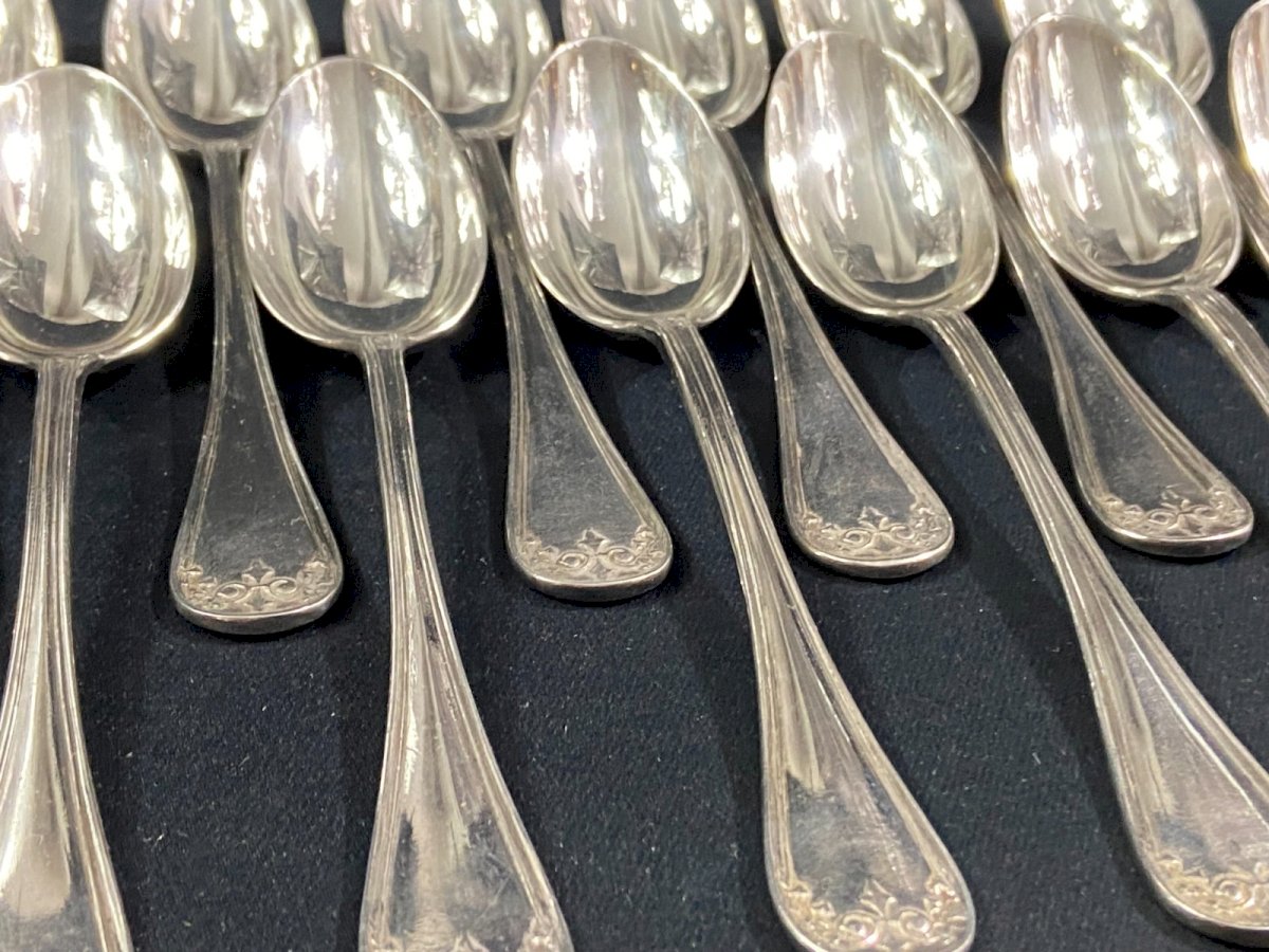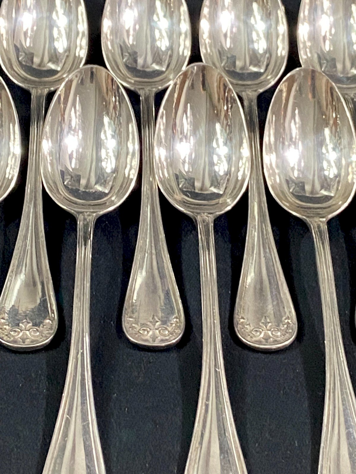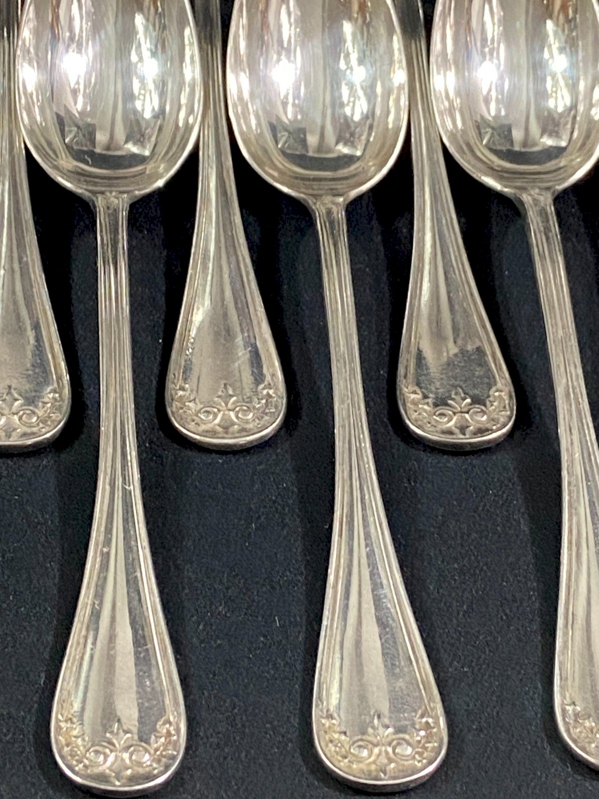 Suite 12 petites cuillères en métal argenté modèle filets et rinceaux Louis XVI