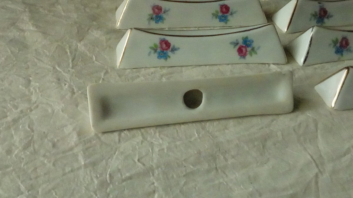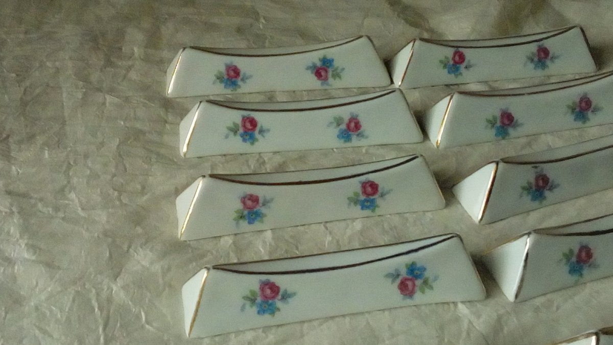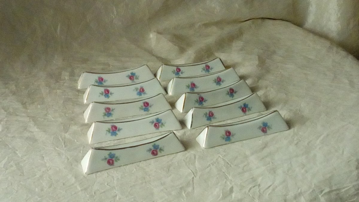 SUITE DE 10 PORTE COUTEAUX EN PORCELAINE DECOR FLORAL**