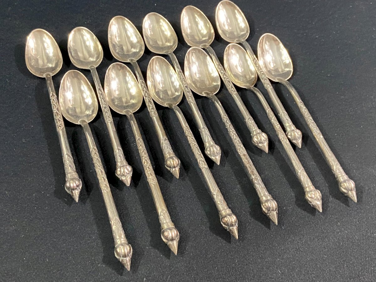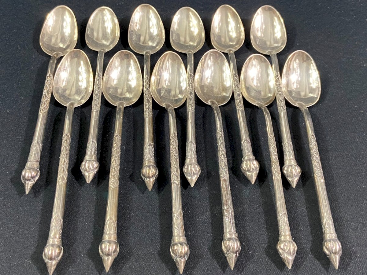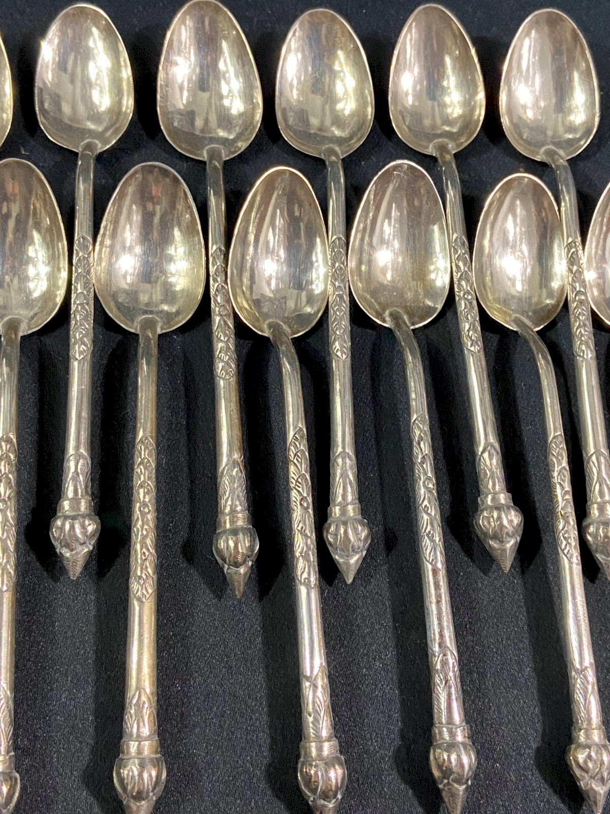 Suite de 12 petites cuillères en argent massif à bec d'oiseau Indochine Vietnam